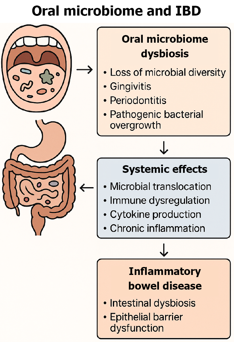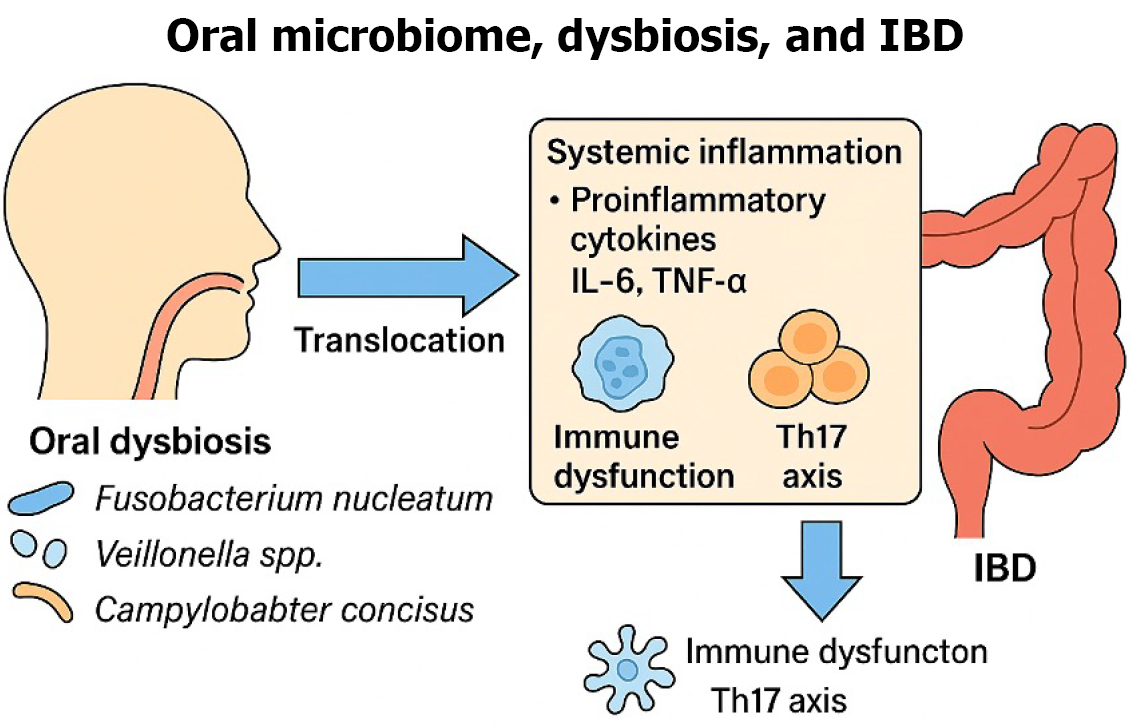 Figure 1 Influence of oral microbiome dysbiosis on systemic and intestinal inflammation in inflammatory bowel disease.