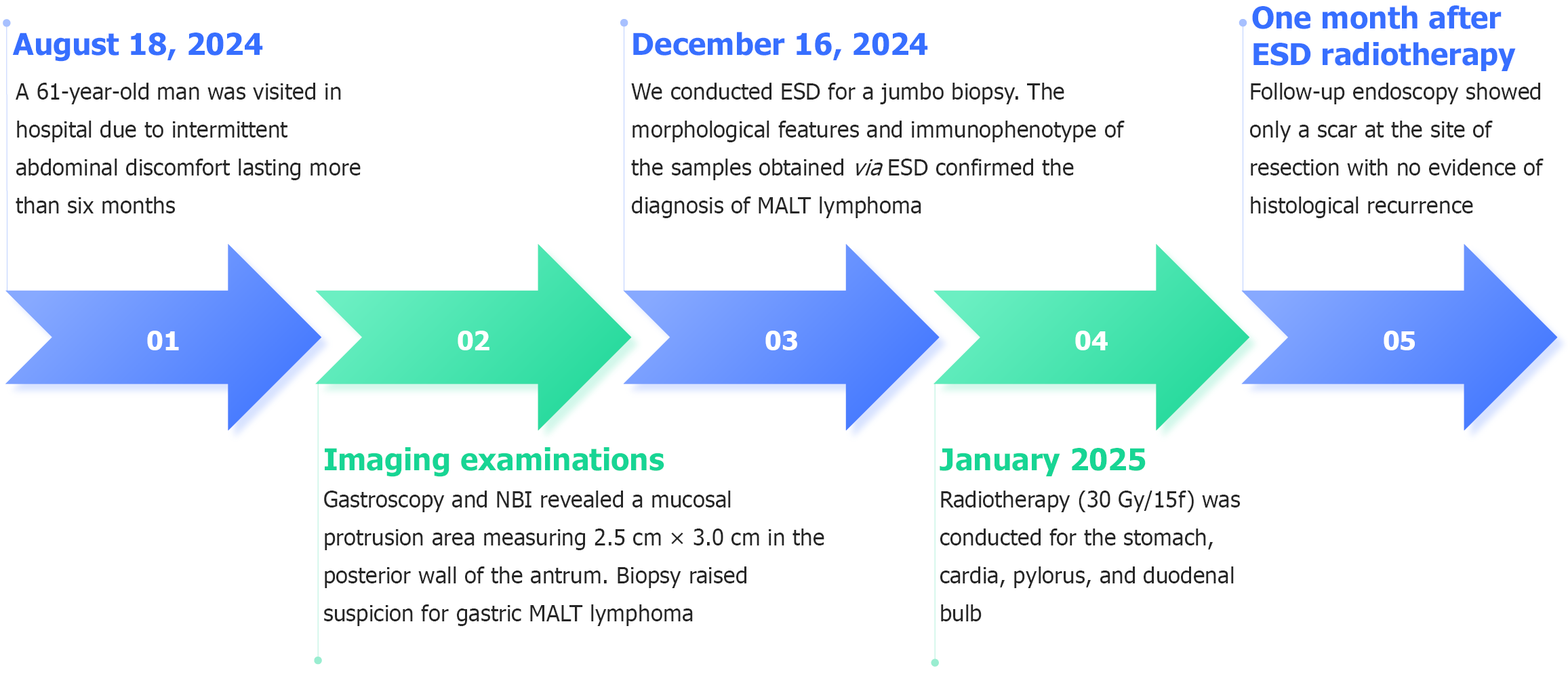 - Citation: Li SH, Niu WW, Huo XX, Zhang H, Shi LM, Liu YT, Xing JJ, Feng ZX, Wang N. Value of endoscopic submucosal dissection in diagnosing gastric mucosa-associated lymphoid tissue lymphoma: A case report. World J Gastroenterol 2025; 31(38): 111549