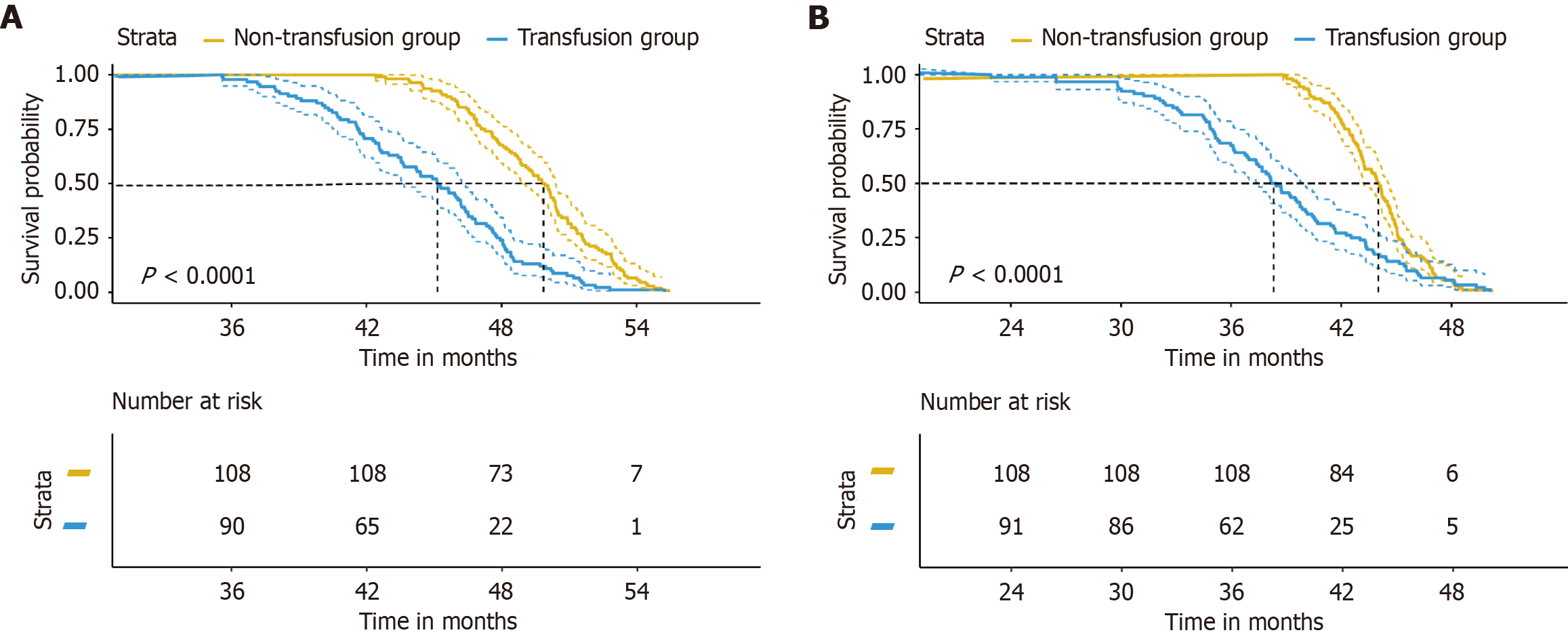 Figure 3 Postoperative survival analysis between the transfusion group and non-transfusion group.