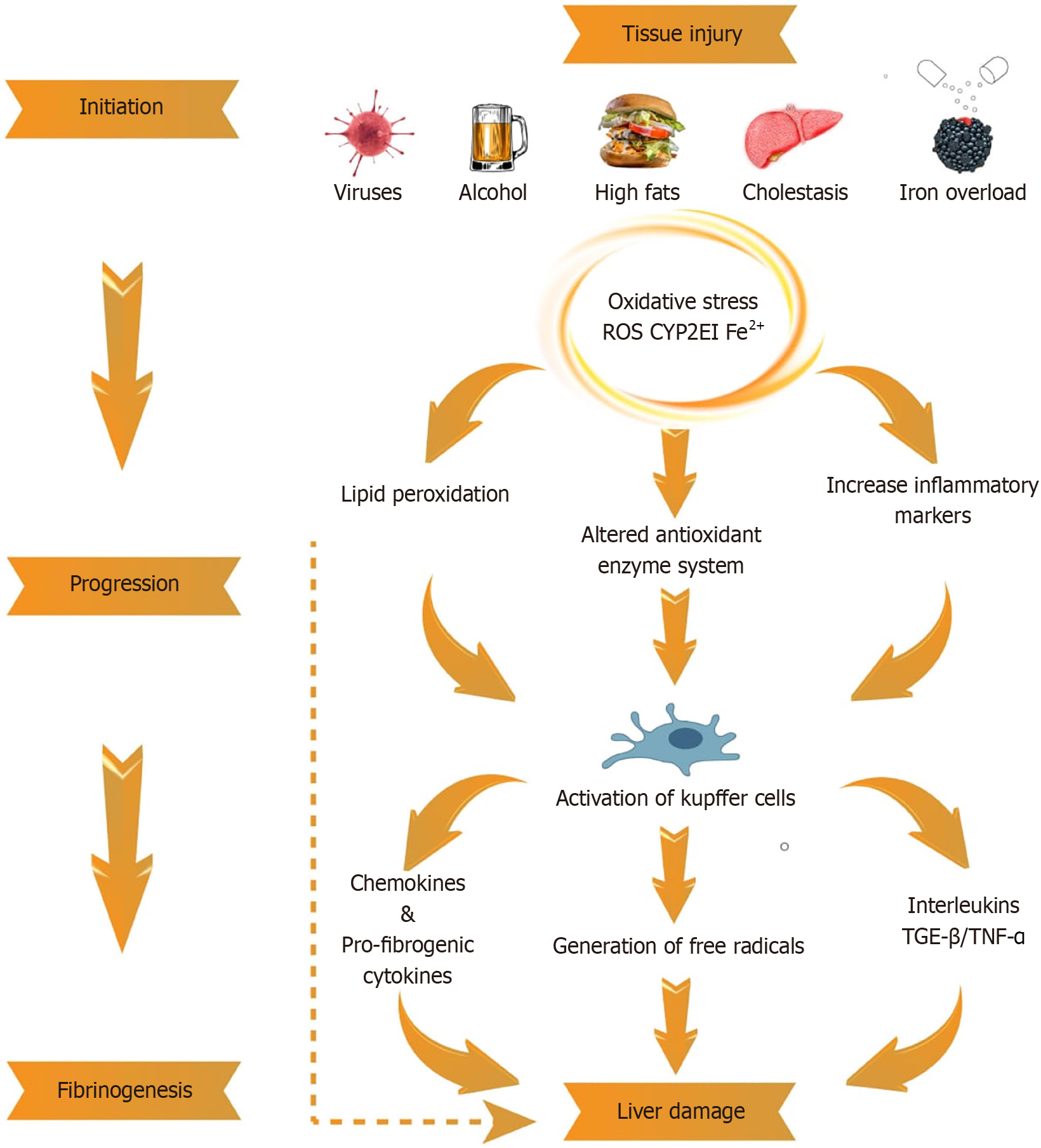 Figure 1 Pathophysiological mechanisms of liver injury leading to fibrogenesis.