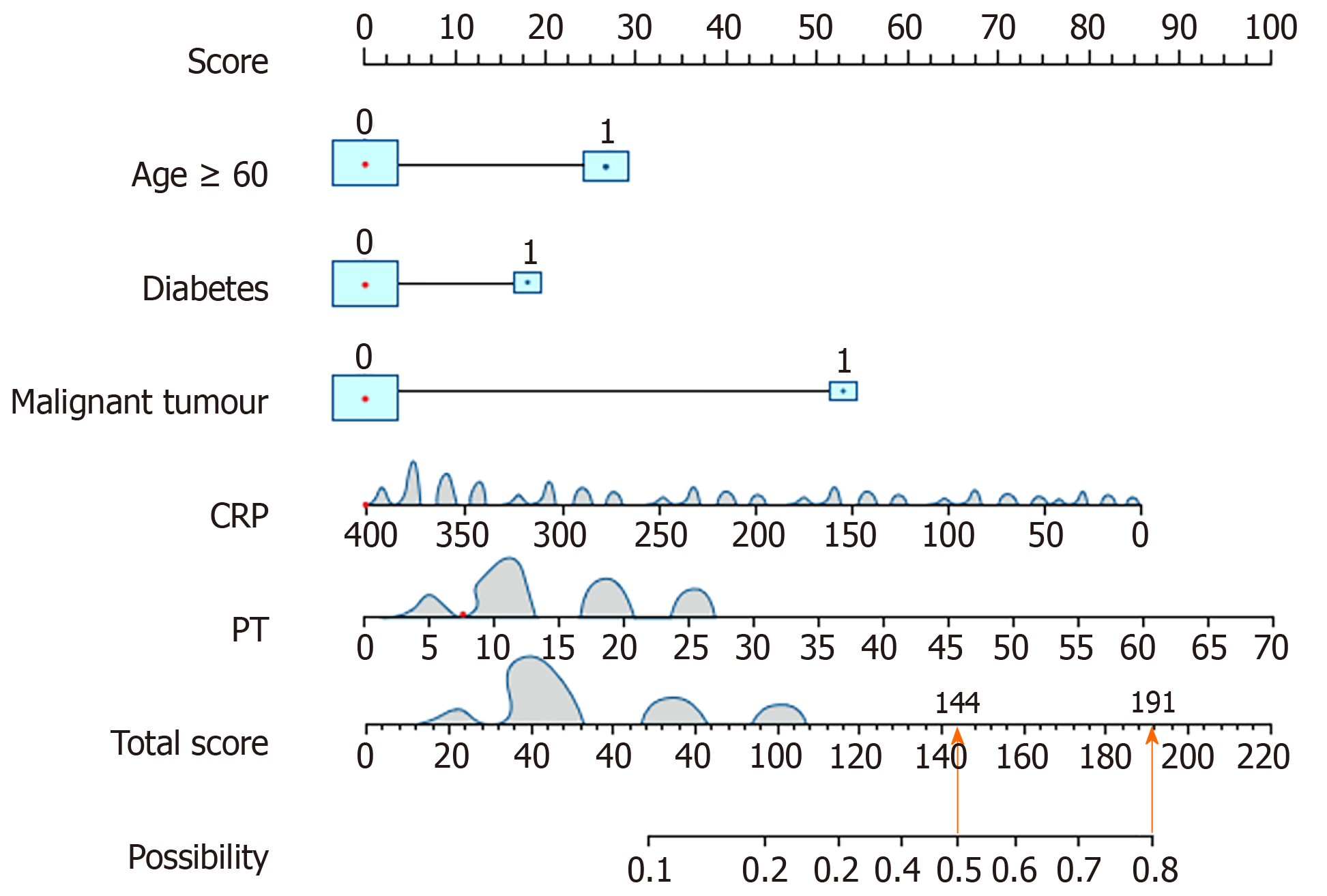 Figure 4 Curves for predicting the risk of multidrug-resistant-Gram-negative bacteria induced bacterial liver abscesses.