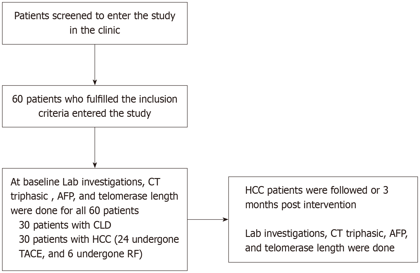 CT: Computed tomography; HCC: Hepatocellular carcinoma; AFP: Alpha fetoprotein; CLD: Chronic liver disease; TACE: Transarterial chemoembolization; RF: Radiofrequency.
