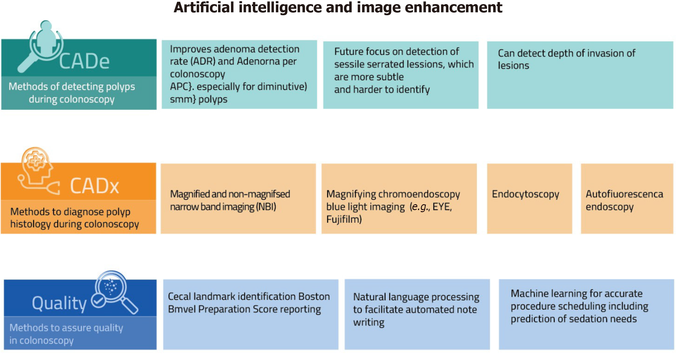 Figure 2 Artificial intelligence and image enhancement in colonoscopy.