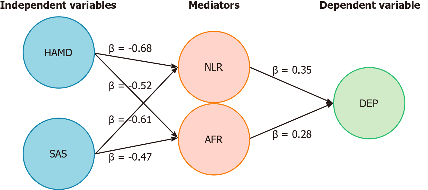 HAMD: Hamilton Depression Scale; SAS: Self-Rating Anxiety Scale; NLR: Neutrophil-to-lymphocyte ratio; AFR: Albumin-to-fibrinogen ratio; DEP: Depression.