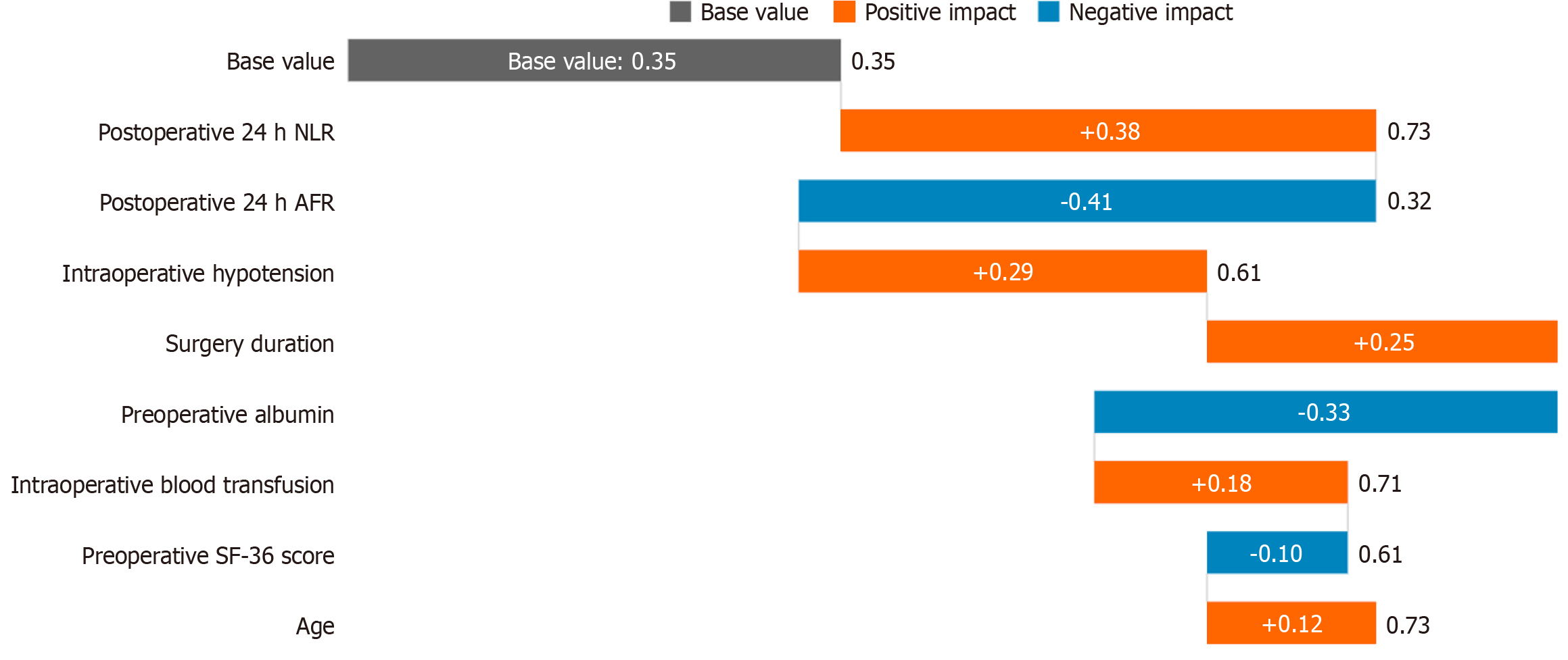 Figure 2 SHapley Additive exPlanation waterfall diagram of prediction model.