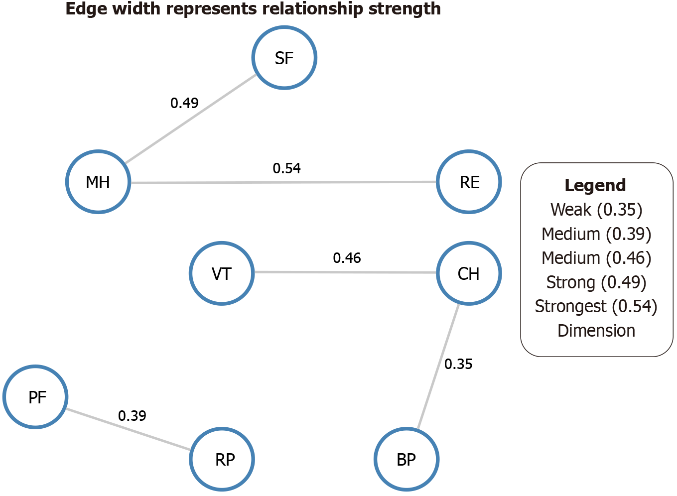MH: Mental health; RE: Role-emotional; SF: Social function; VT: Vitality; GH: General health; PF: Physical function; RP: Role-physical; BP: Bodily pain.