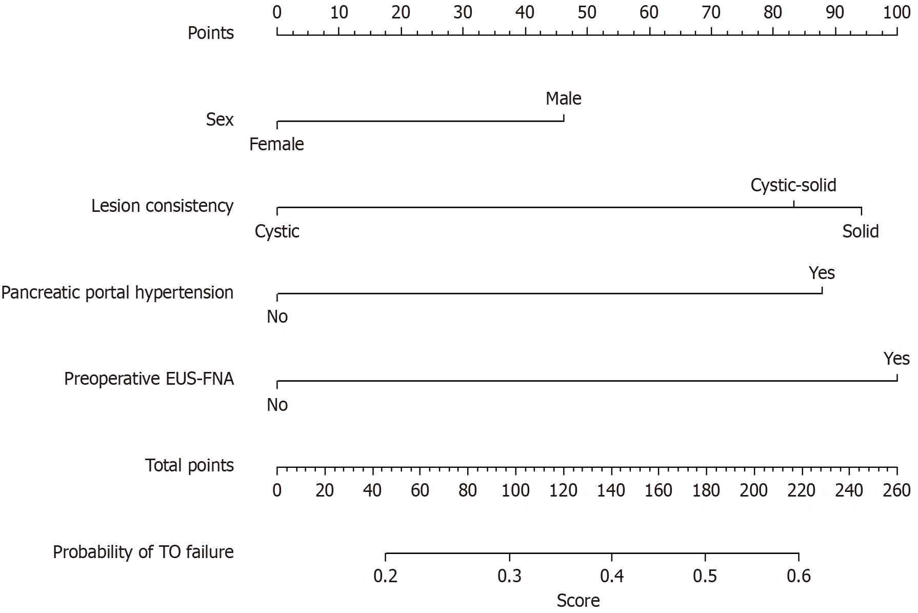 Figure 2 Nomogram for predicting textbook outcome failure after laparoscopic distal pancreatectomy.