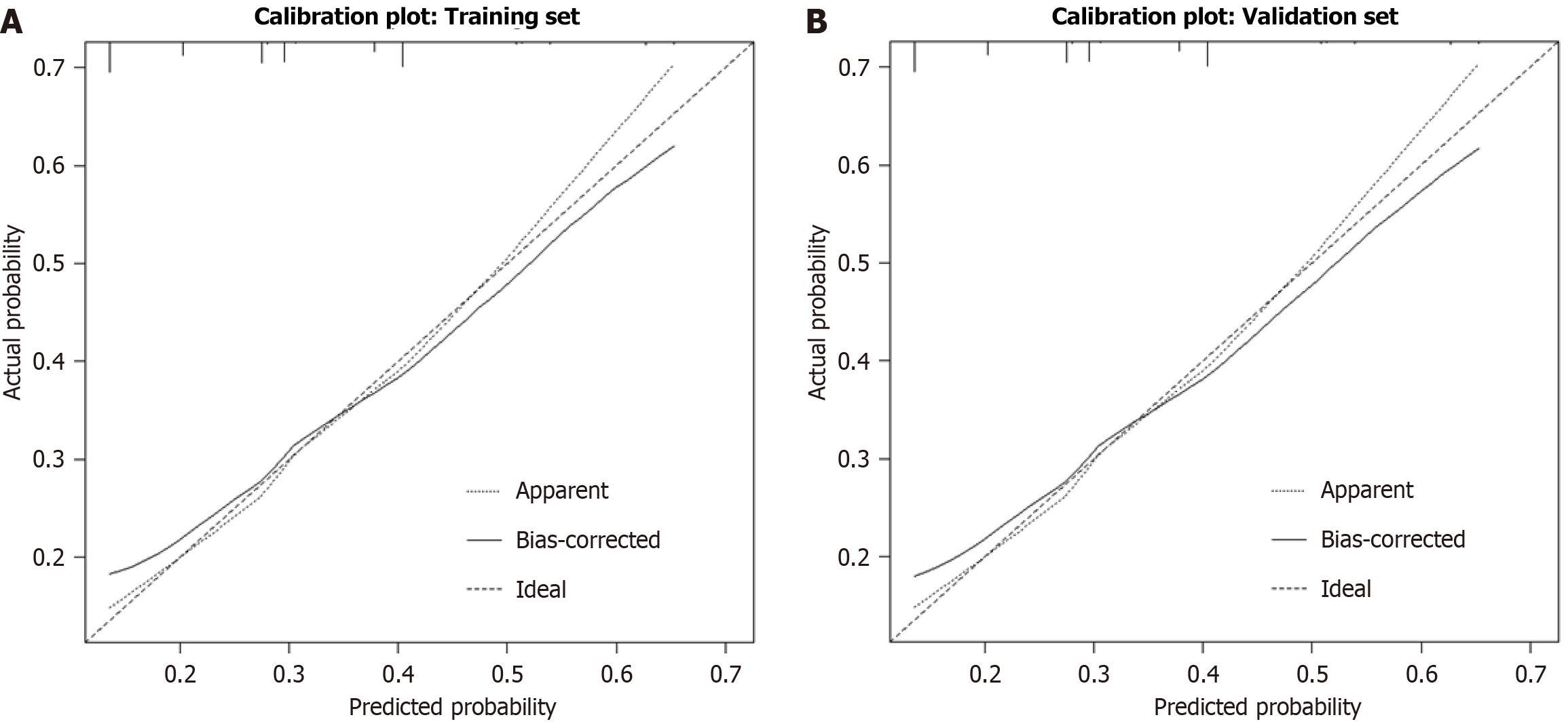 Figure 3 Calibration plots of the textbook outcome failure risk prediction model.