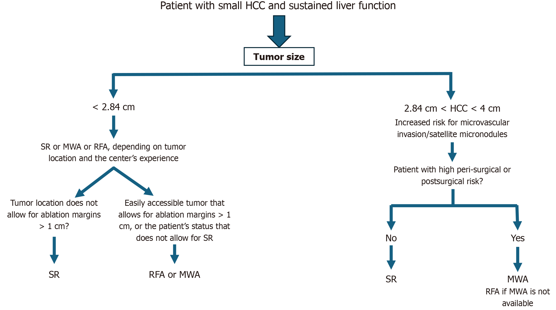 HCC: Hepatocellular carcinoma; MWA: Microwave ablation; RFA: Radiofrequency ablation; SR: Surgical resection.