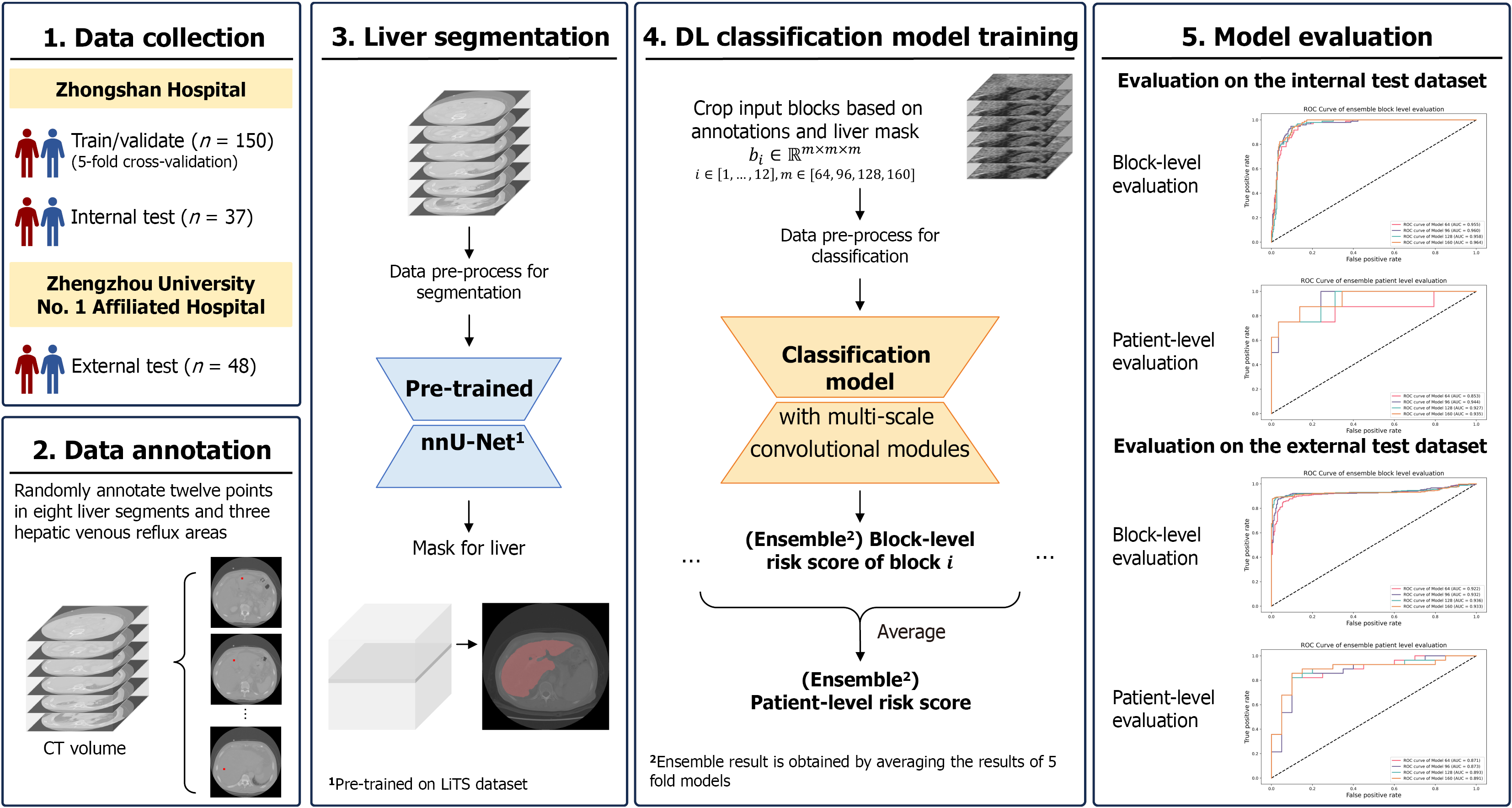 Figure 1 Pipeline of deep-learning-based pyrrolizidine-alkaloid induced hepatic sinusoidal obstruction syndrome classification based on computed tomography images.