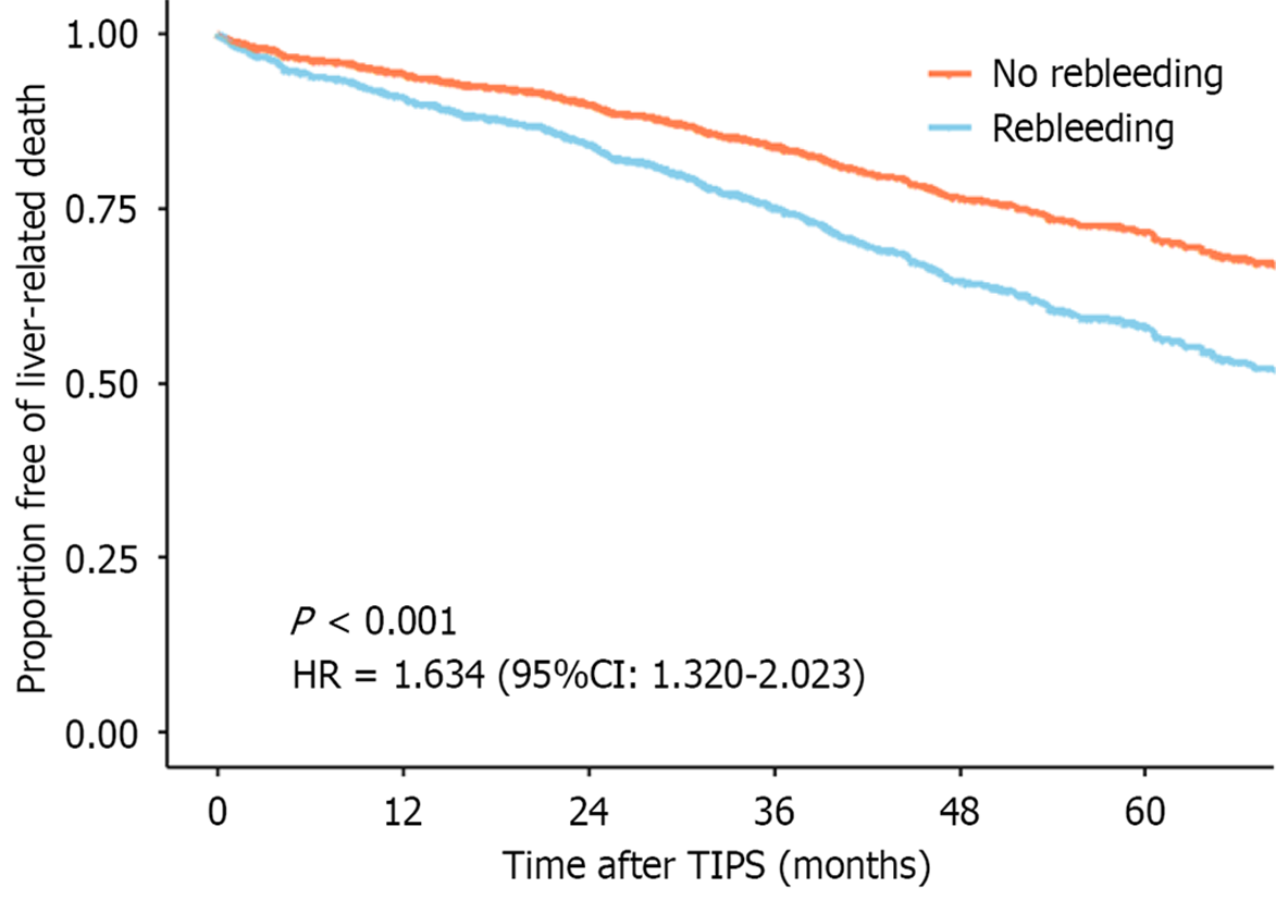 Figure 1 Differences in liver-related mortality between groups with and without post-transjugular intrahepatic portosystemic shunt rebleeding.
