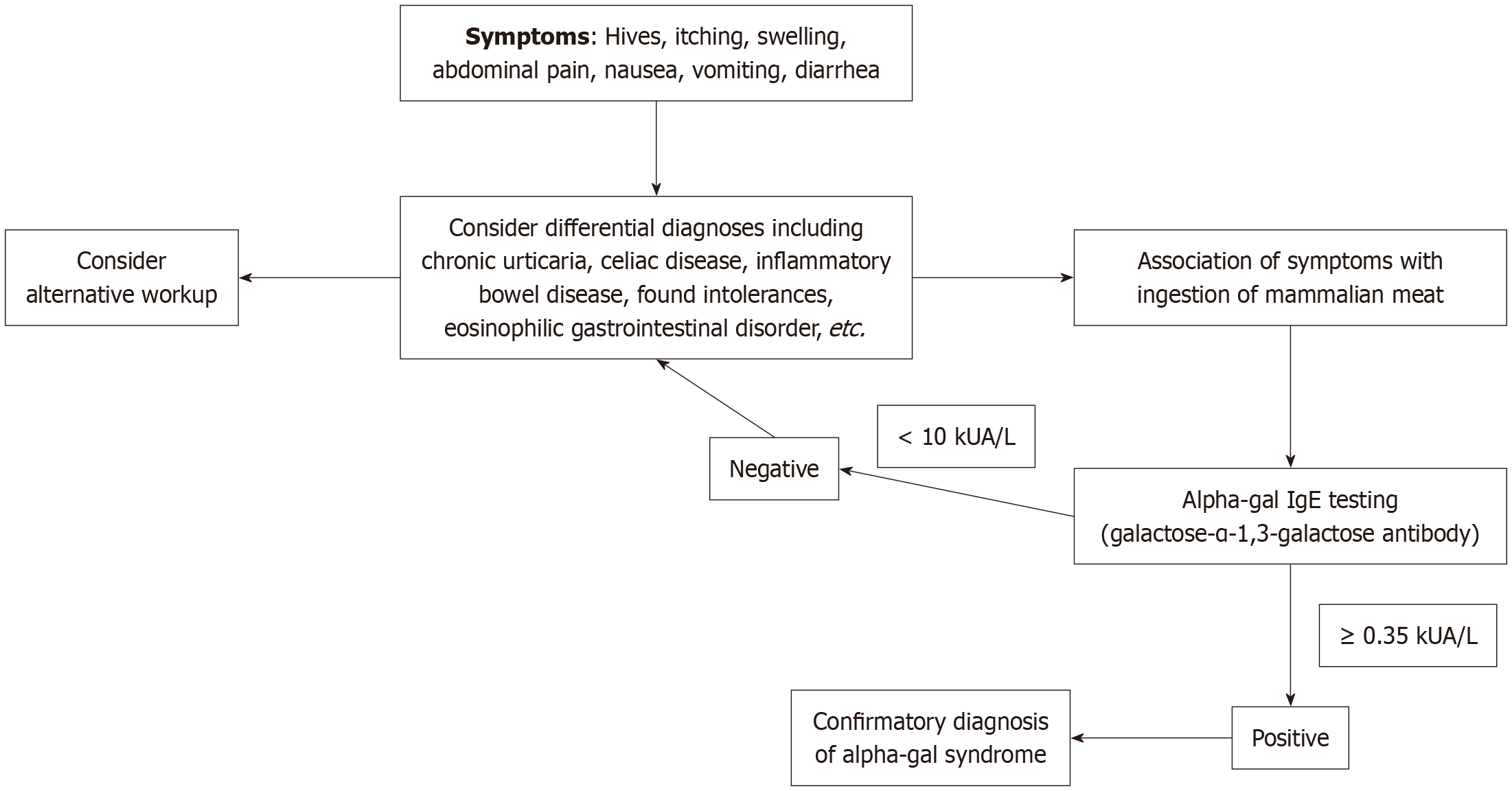 A simplified algorithm to diagnosing alpha-gal syndrome including alternative differential diagnoses.