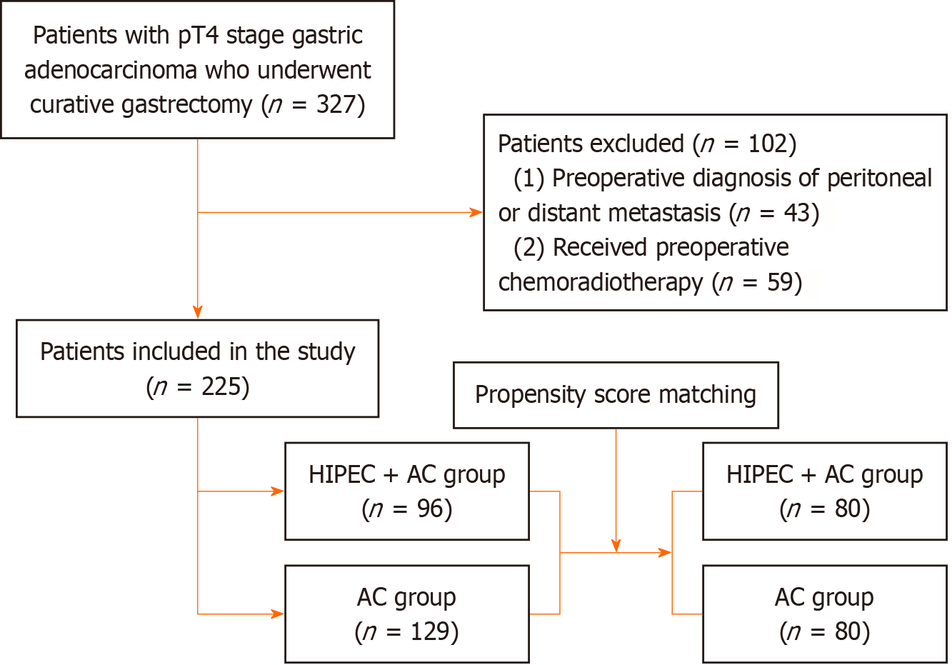 AC: Adjuvant chemotherapy; HIPEC: Hyperthermic intraperitoneal chemotherapy; pT4: Pathological T staging.