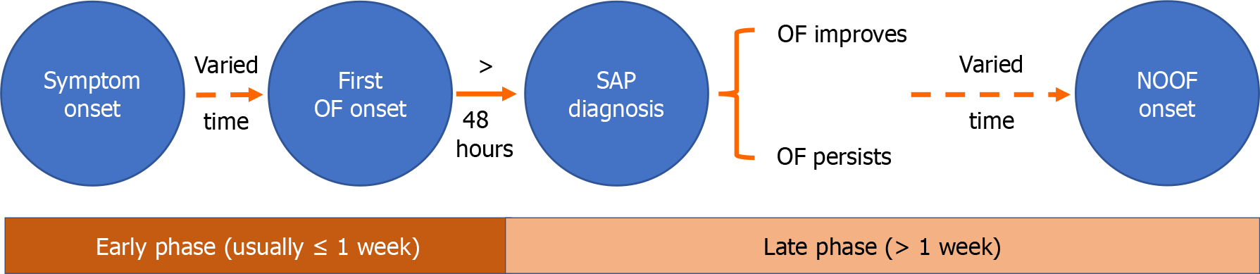 OF: Organ failure; SAP: Severe acute pancreatitis; NOOF: New-onset organ failure.