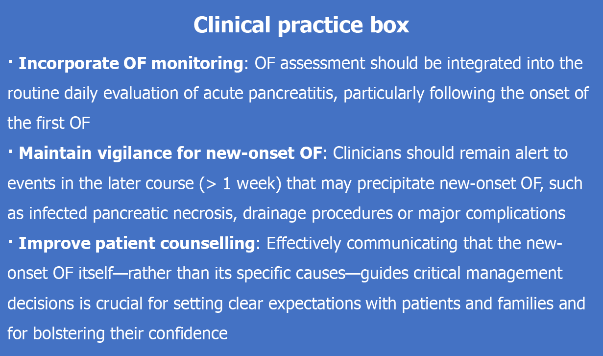 - Citation: Zhang XT, Zhu H, Chen XC, Gao T, Chen M, Zhu ZH, Zhang BY, Yu WK. New-onset persistent organ failure predicts adverse outcomes in patients with severe acute pancreatitis. World J Gastroenterol 2026; 32(7): 114773