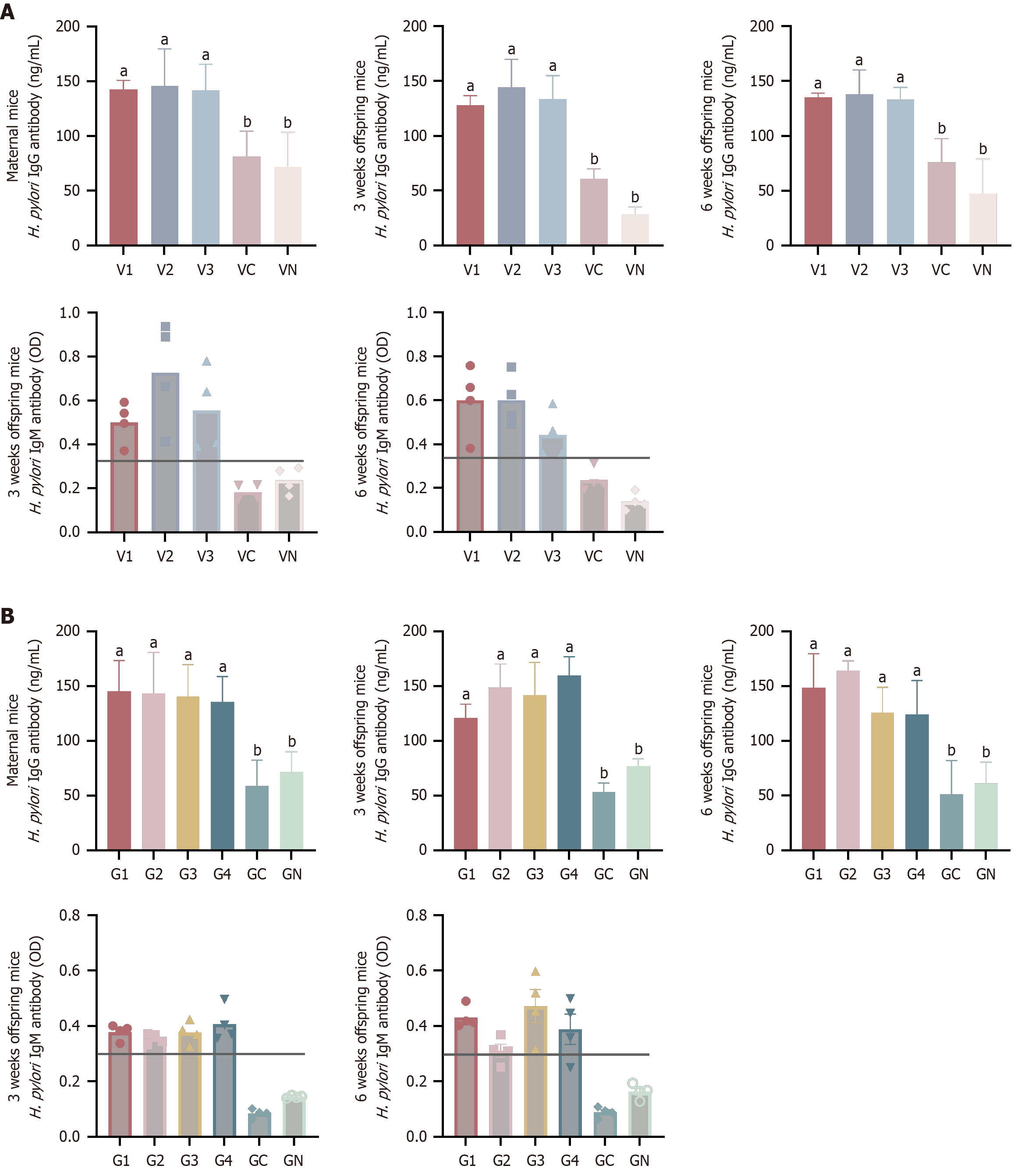 Figure 3 Helicobacter pylori IgG and IgM antibodies in mice sera.