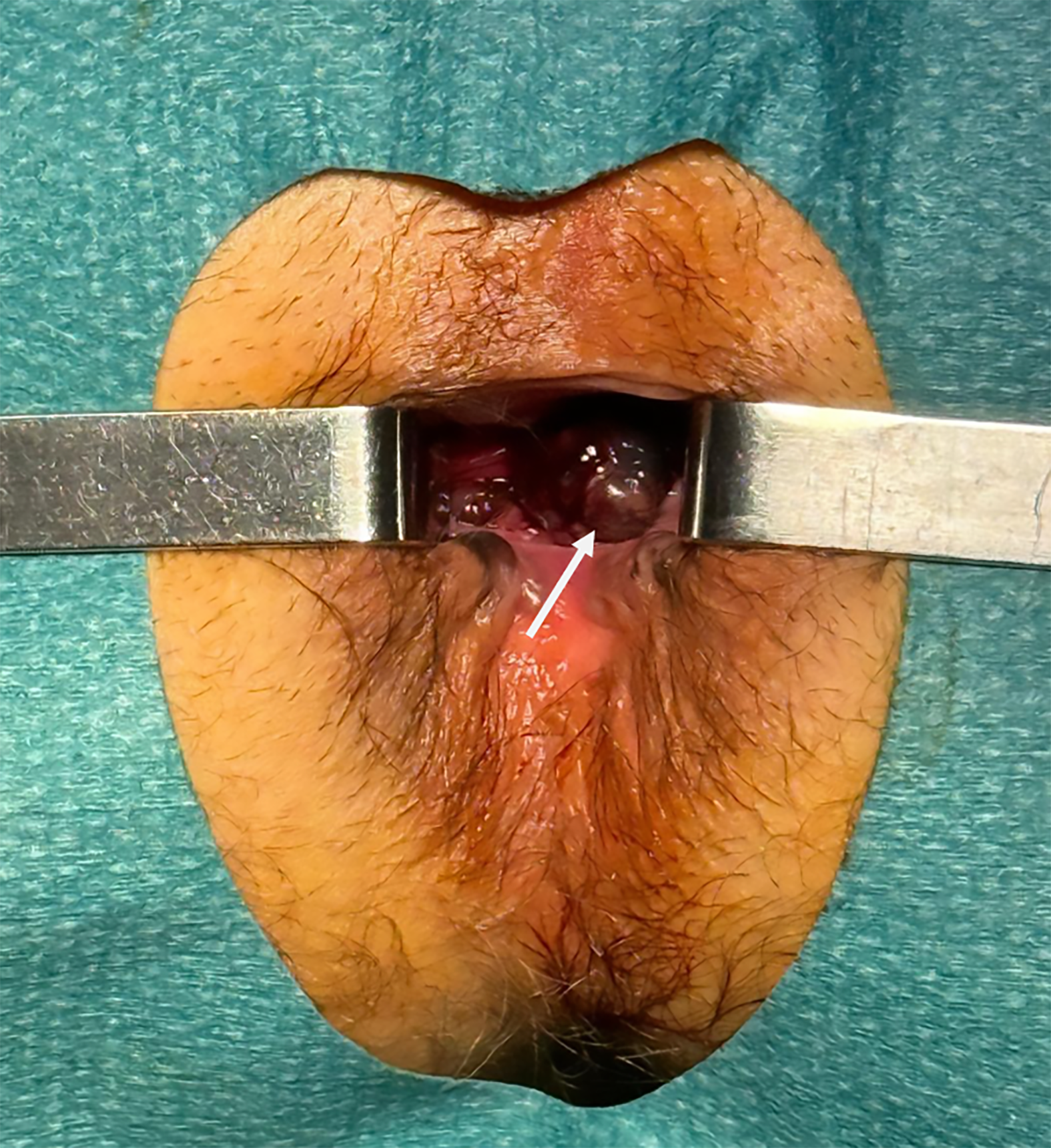 Figure 1 Mucosal anal melanoma, transanal view.