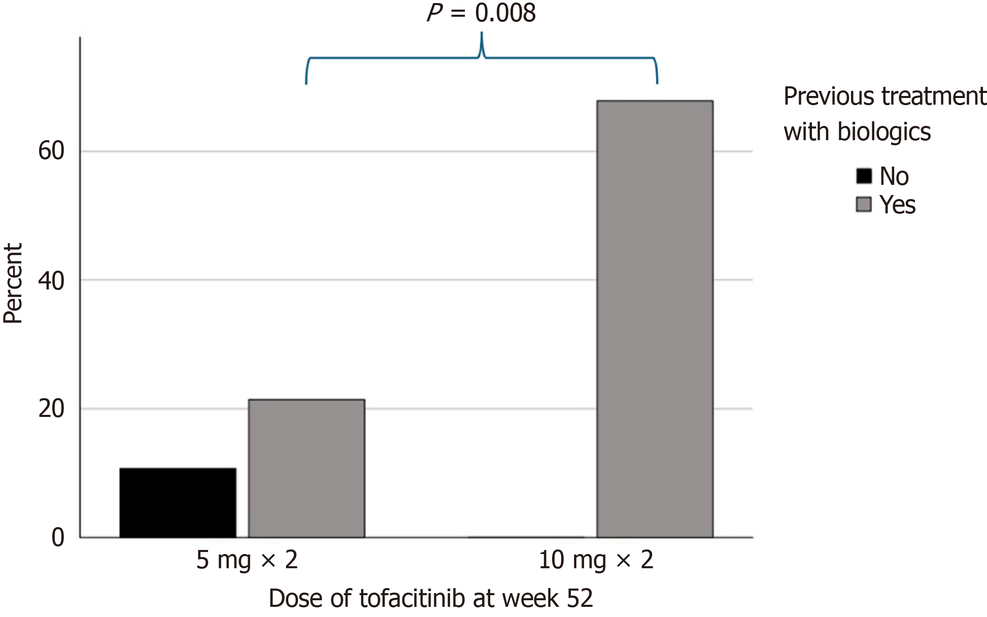 | Dose of tofacitinib at week 52 | 0.556 (0.106-2.901) | 0.486 |