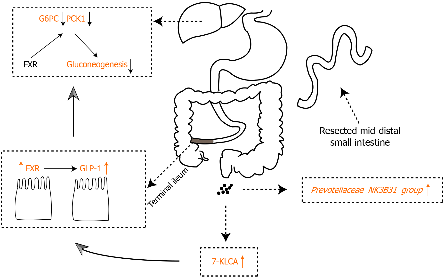 - Citation: Xu CY, Zheng ZH, Yang K, Wu RR, Cao JQ, Duan JY. Distal small bowel resection with preservation of the terminal ileum suppresses hepatic gluconeogenesis via the Prevotellaceae_NK3B31_group-mediated 7-KLCA-FXR axis. World J Gastroenterol 2025; 31(43): 112483