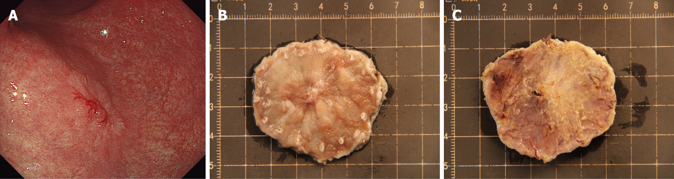 In this context, stereomicroscopy is being recognized as an invaluable tool in the pathological evaluation of tissue specimens, especially in the case of small biopsies and surgical resections[6,7]. This imaging technique provides distinct advantages, including three-dimensional visualization and enhanced depth perception, both of which are crucial for accurately assessing the characteristics of lesions and their relationships within complex tissue architecture[8,9]. Previous studies demonstrated that stereomicroscopy can achieve complete one-to-one correspondence between endoscopic and histopathological images, making it a powerful tool for bridging endoscopy and histopathology[10,11]. For EGC spe