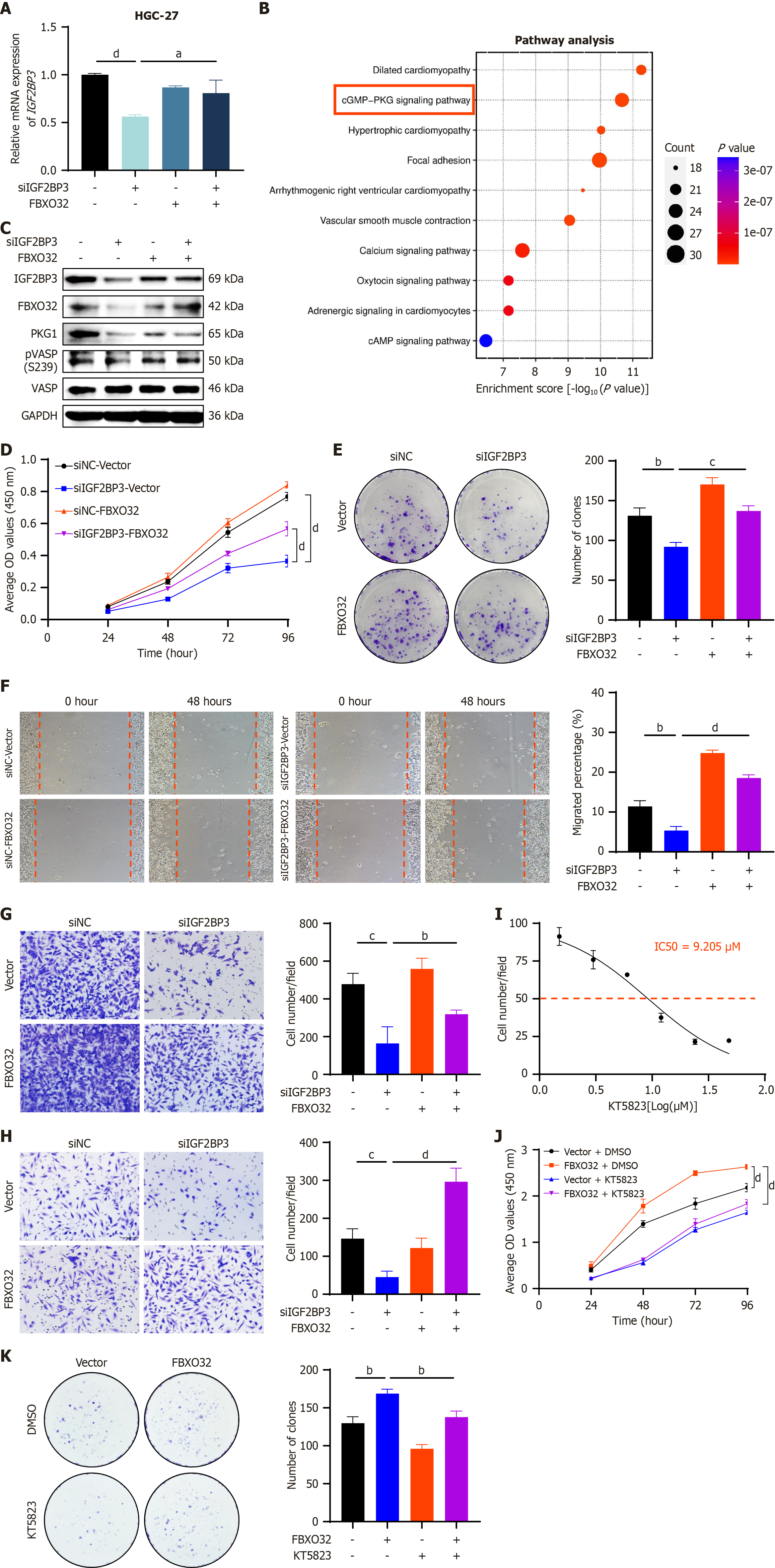 - Citation: Si Y, Tian B, Zhang R, Xuan MD, Liu KY, Jiao J, Han SS, Li HF, Hu YH, Zhao HY, He WJ, Wang J, Liu T, Yu WF. IGF2BP3 binds to FBXO32 to activate the cyclic guanosine monophosphate-protein kinase G pathway, promoting gastric cancer progression. World J Gastroenterol 2025; 31(46): 111631