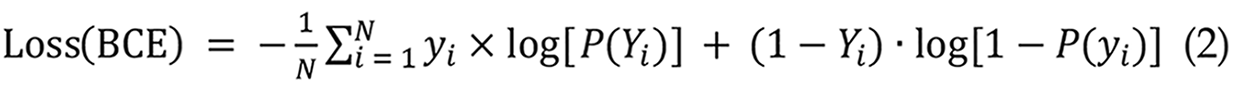 The RNN model utilizes BCE loss, which is appropriate for binary classification tasks[33]. This study employs the BCE loss function to classify the presence or absence of small intestinal bleeding. The model's output is a probability value ranging from 0 to 1, signifying the risk of hemorrhage. The BCE loss formula is presented in Equation 2: