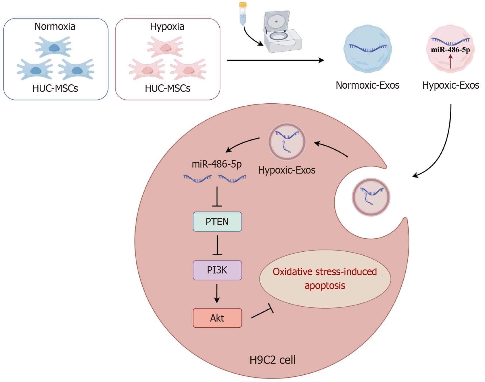 - Citation: Zeng ZF, Rao J, Xia XB, Chen XY, He HX, Liu B, Chen Q, Liu YD, Wang GJ, Cheng PC, Wang JN, Wang P, Yu Y, Wang ZN. Hypoxic preconditioned mesenchymal stem cell-derived exosomes alleviate oxidative stress-induced cardiomyocyte apoptosis through miR-486-5p. World J Stem Cells 2025; 17(12): 112207