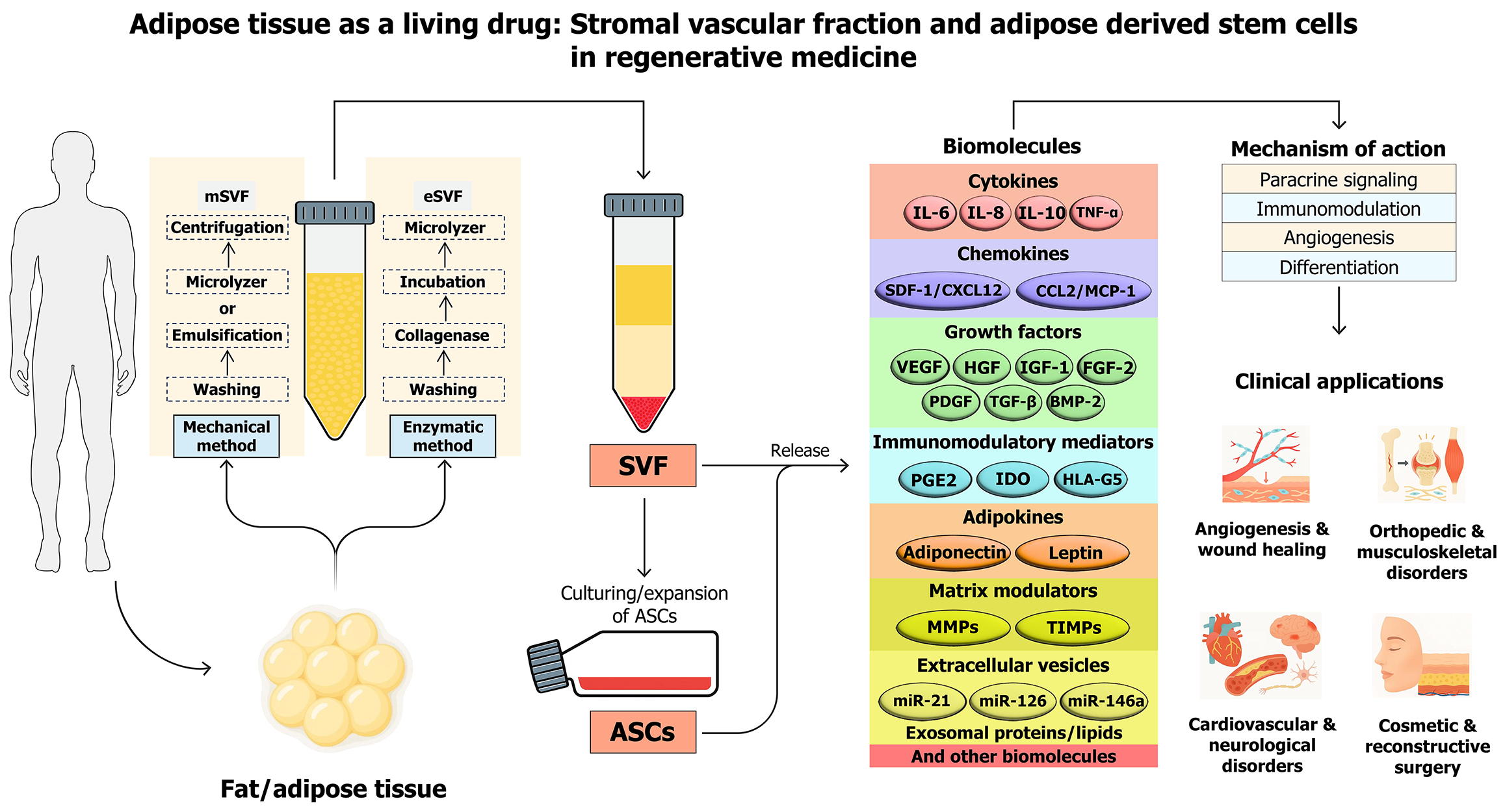 Figure 3 Adipose tissue as a living drug: Stromal vascular fraction and adipose-derived stem cells in regenerative medicine.