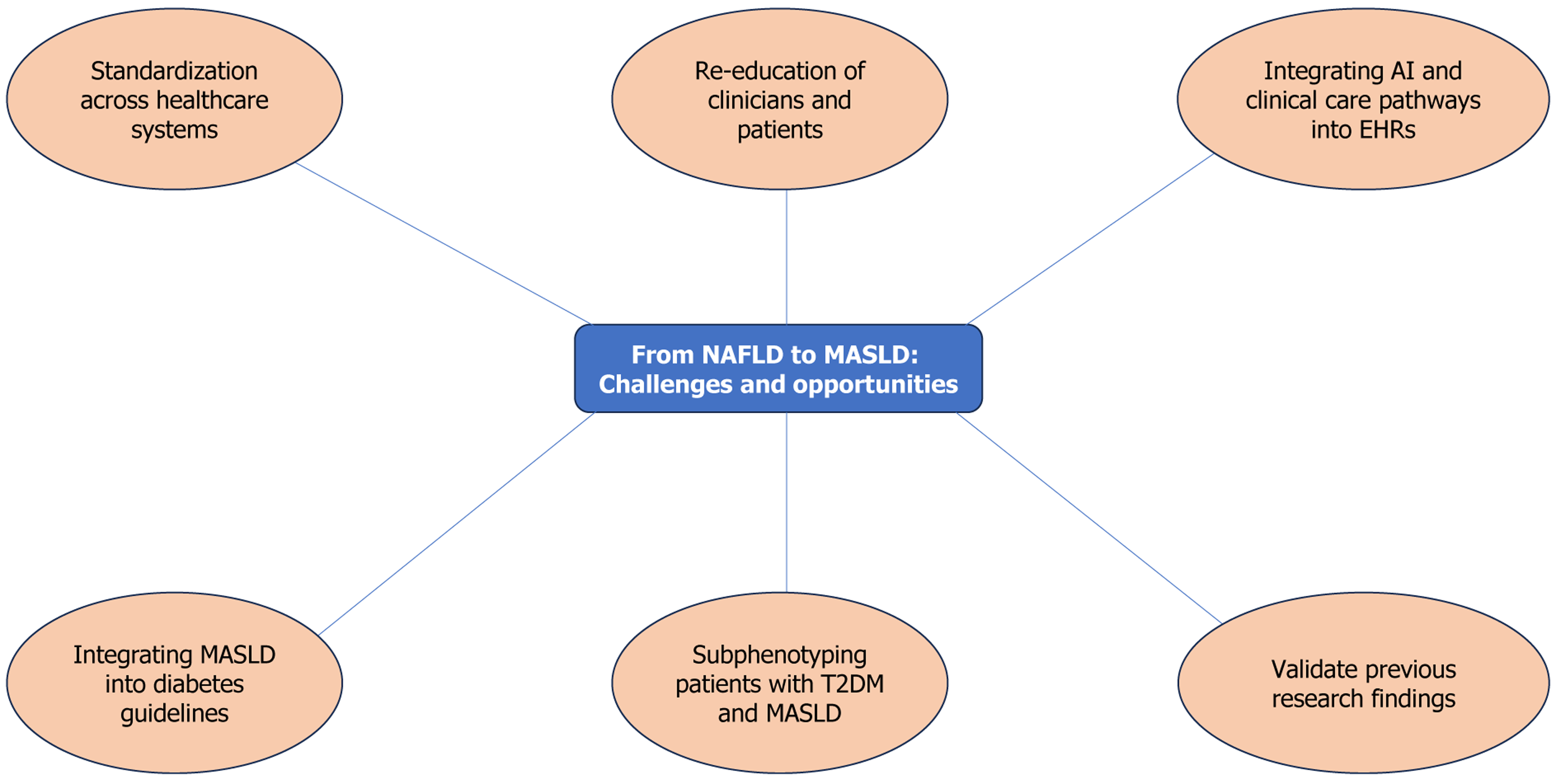 AI: Artificial intelligence; EHRs: Electronic health records; T2DM: Type 2 diabetes mellitus; MASLD: Metabolic dysfunction-associated steatotic liver disease; NAFLD: Non-alcoholic fatty liver disease.