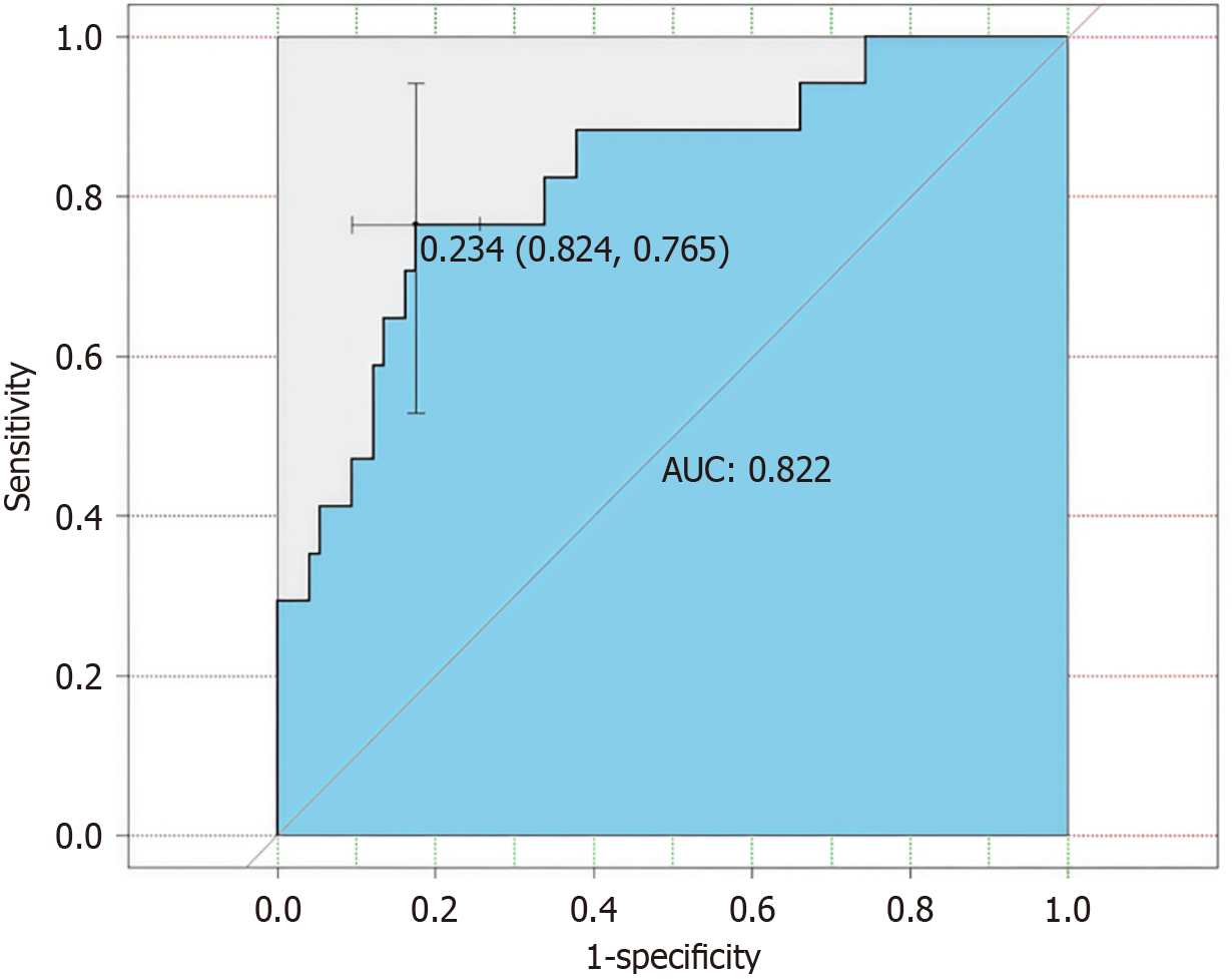 Figure 3 Receiver operating characteristic curve evaluating the predictive performance of the interleukin-6/interleukin-10 ratio for immune dysregulation following radiofrequency ablation.
