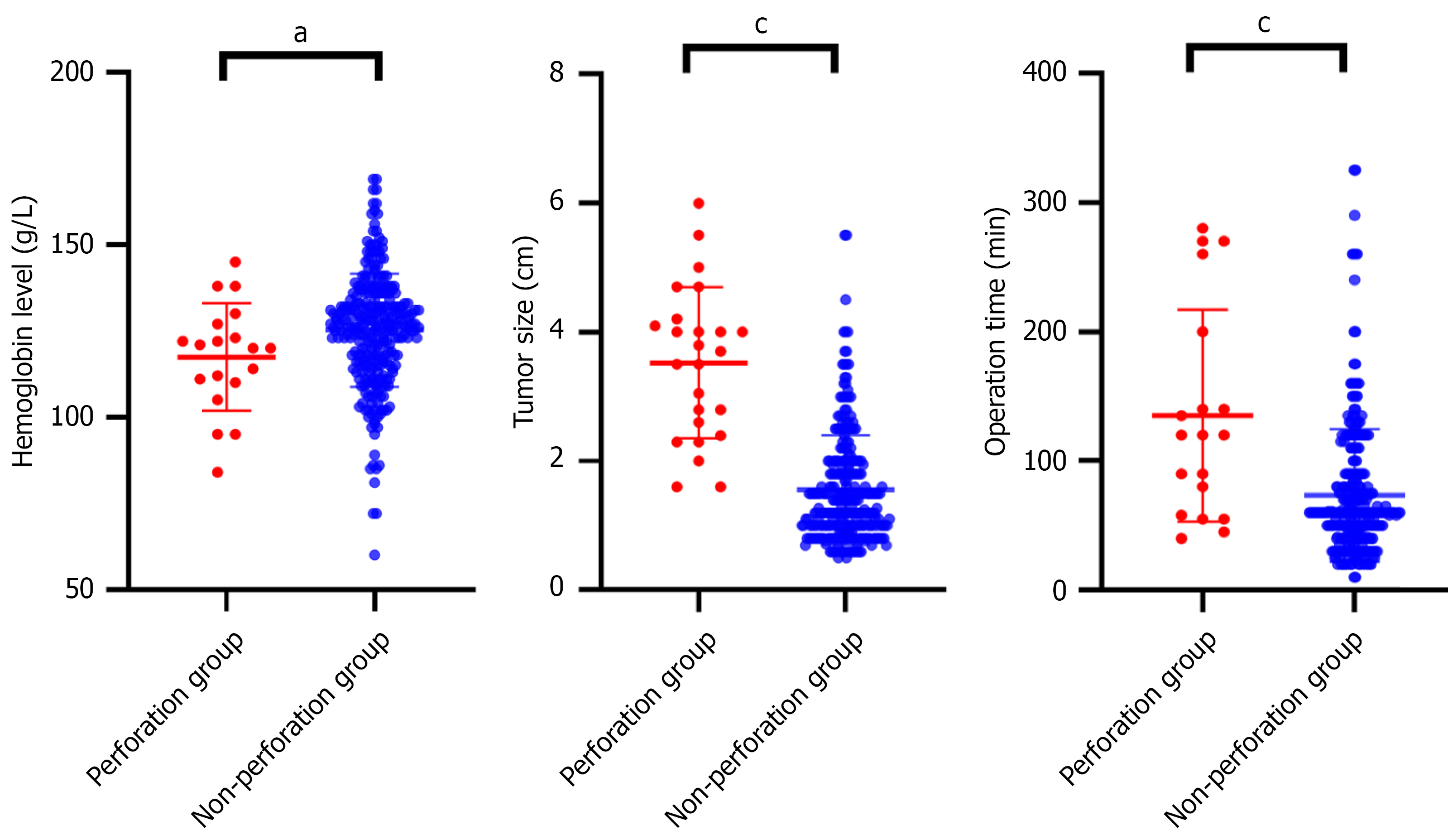 Figure 2 Analysis of risk factors for postoperative perforation in gastric gastrointestinal stromal tumors after endoscopic removal.