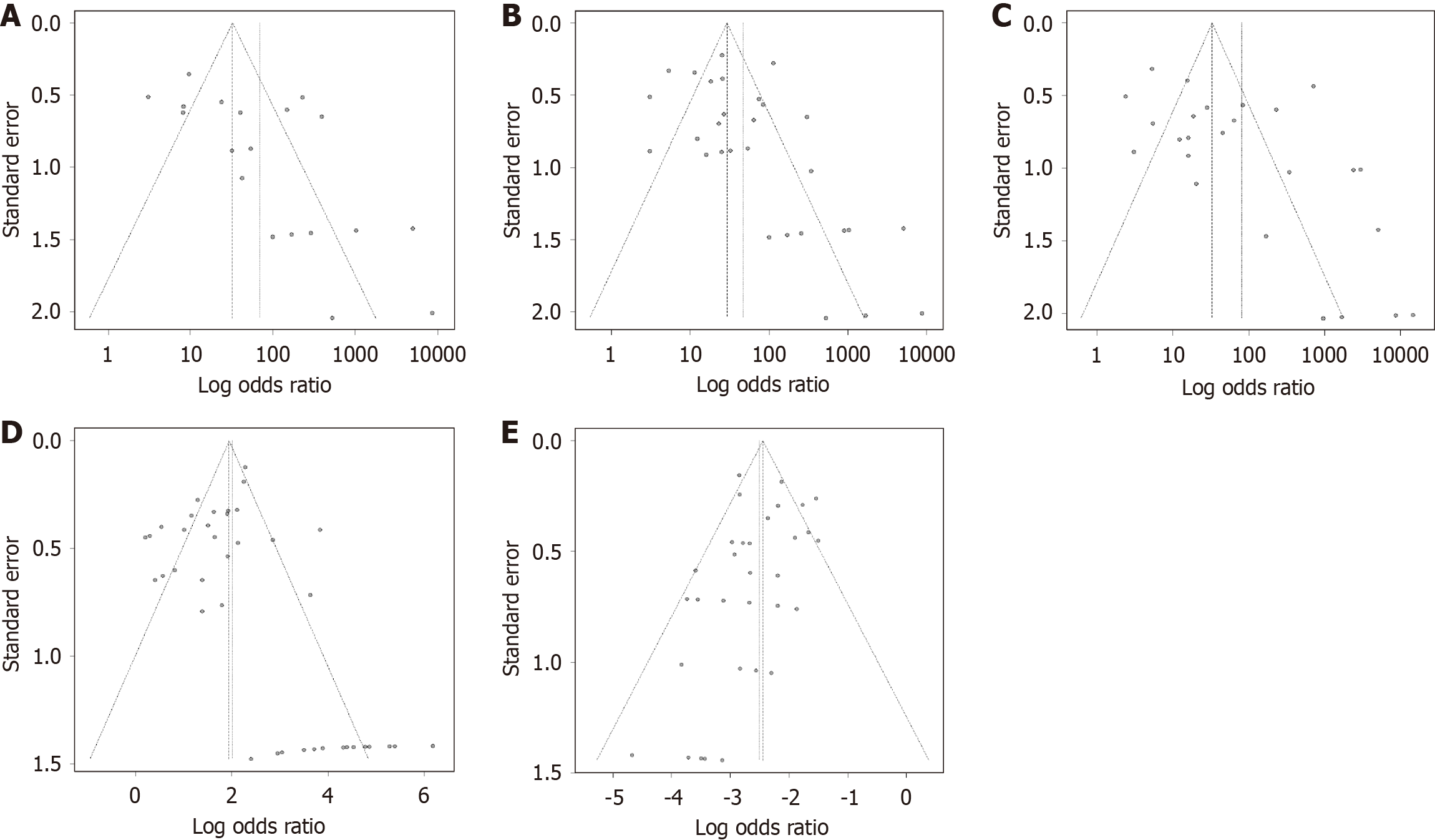 A: Success rate for reaching the papilla; B: Success rate of enteroscopy; C: Diagnostic success rate; D: Procedural success rate; E: Incidence of complications.