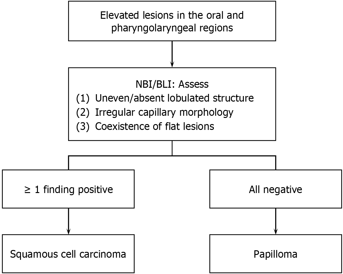 Figure 6 Flowchart for diagnosing squamous cell carcinoma and papilloma in oral and pharyngolaryngeal elevated lesions.