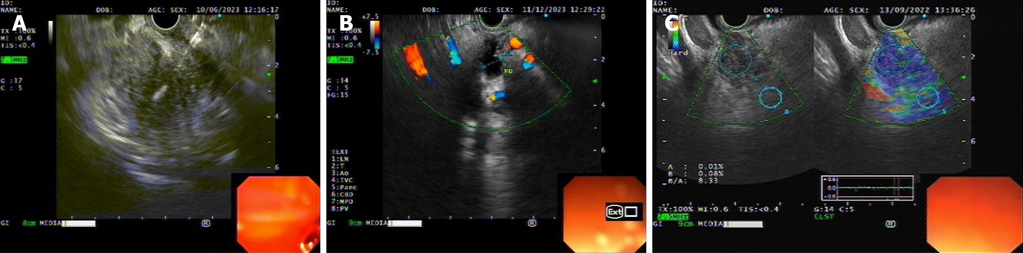 Figure 1 Representative endoscopic ultrasound imaging findings of pancreatic head lesions.