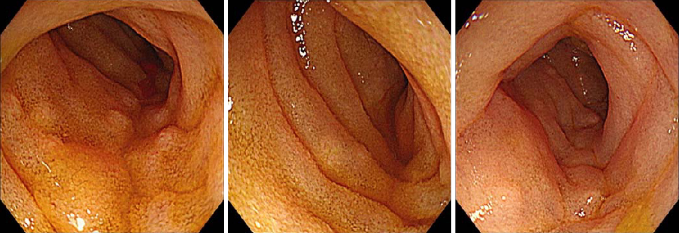 Figure 2 Lower endoscopy showing edema in the terminal ileum.