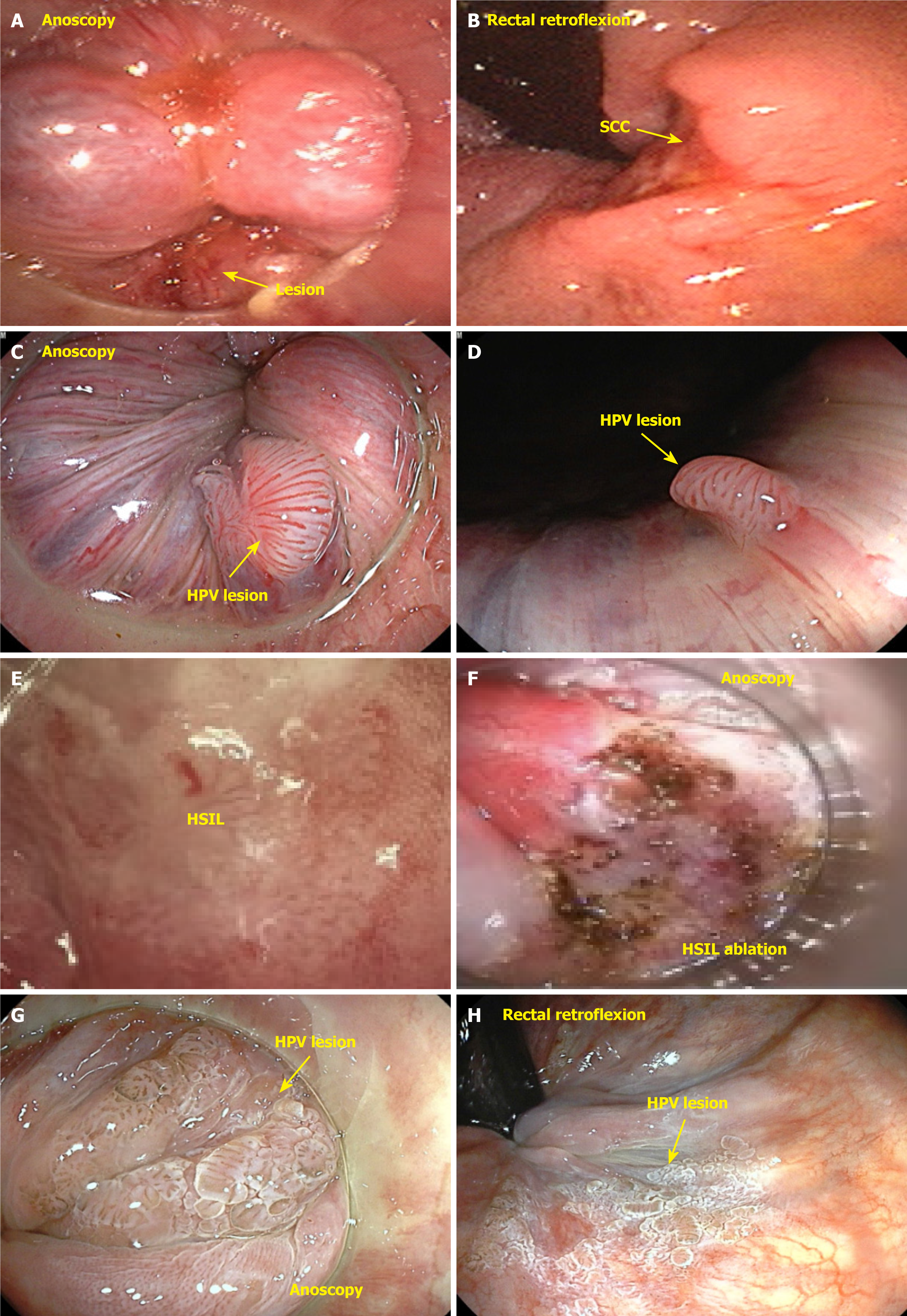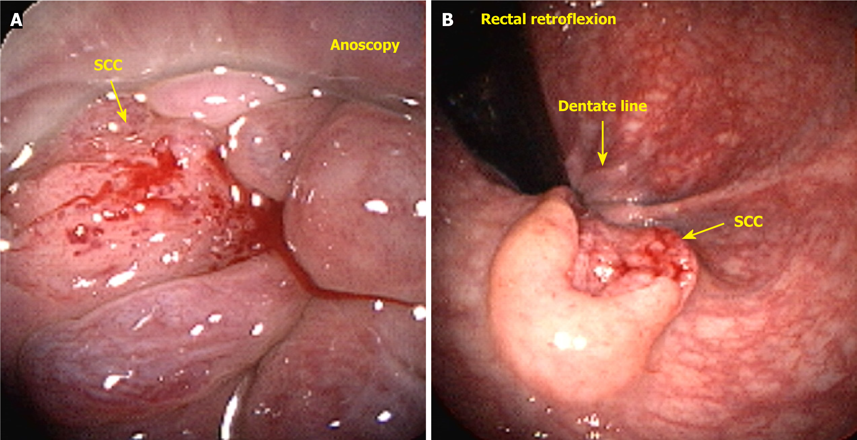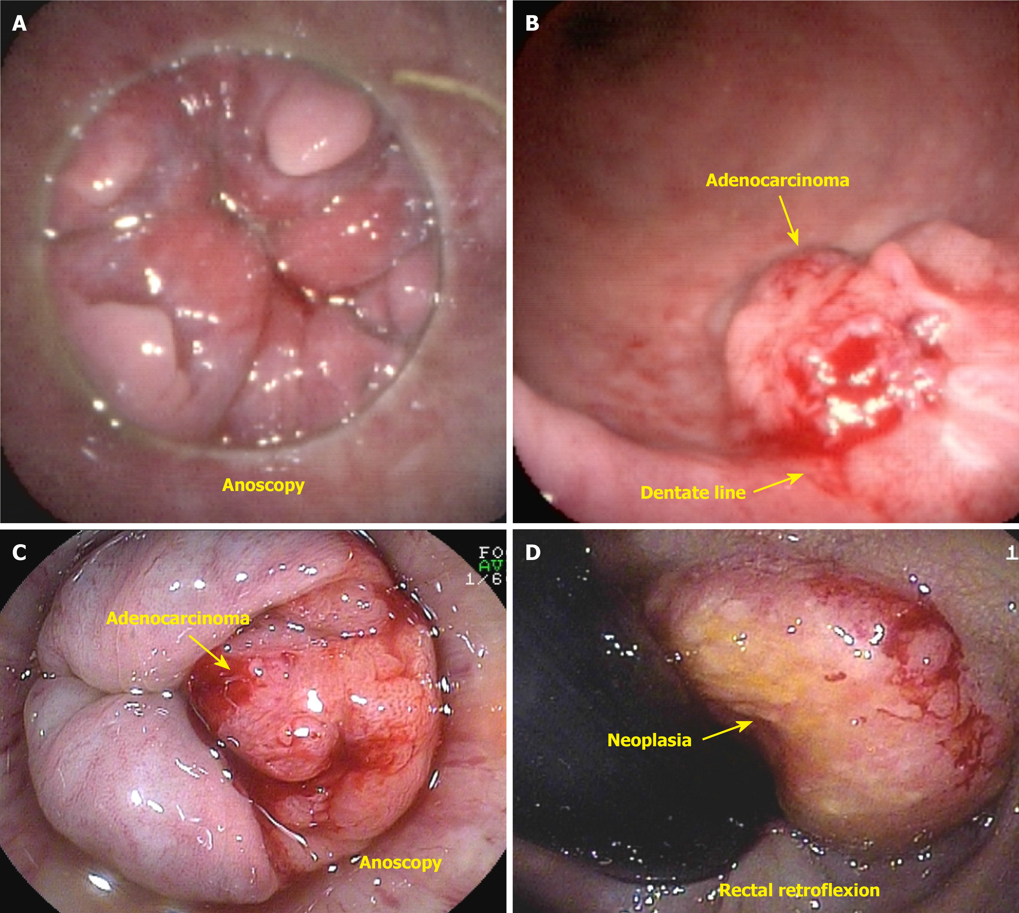 Core Tip: Endoscopists have expressed concerns that the colonoscope does not provide an adequate view of the anal canal. The use of the anoscope and rectal retroflexion allows for perfect visualization of the anal canal. This approach has led to the diagnosis of important conditions through videoanoscopy. Although the incidence of squamous cell carcinoma is extremely low, the presence of several other benign and malignant lesions justifies routine examination of the anal region.