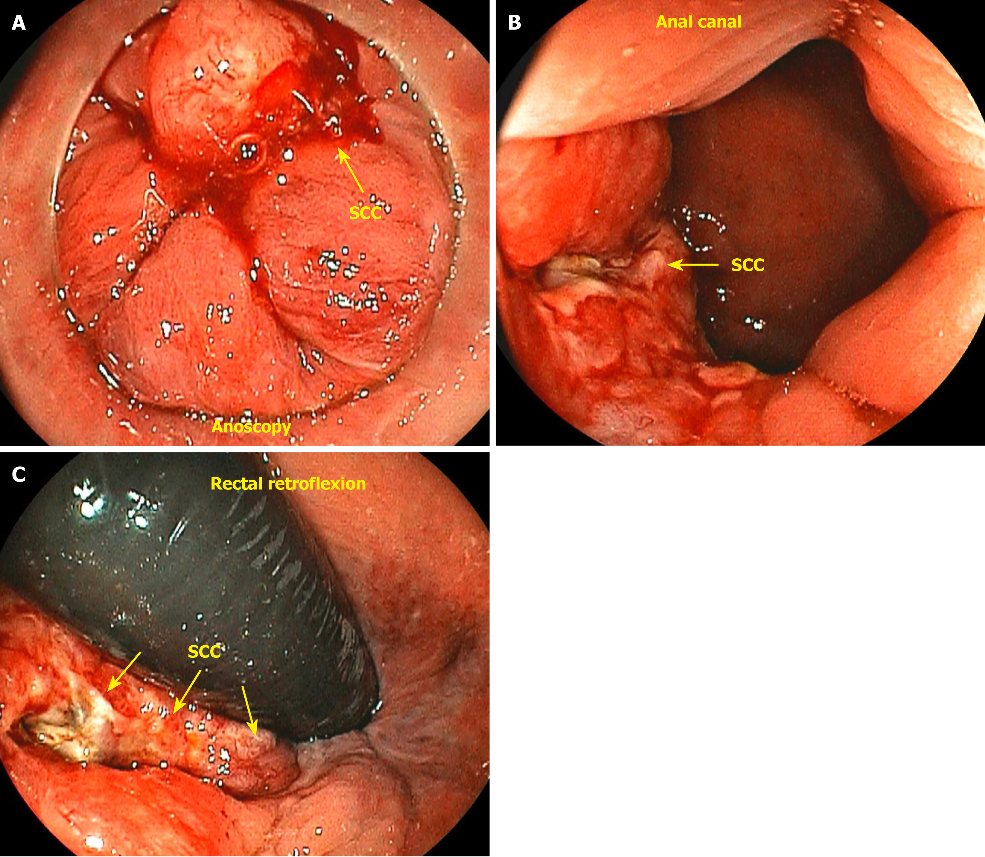 It is common for clinicians and surgeons to refer patients with proctological complaints for colonoscopy as part of colorectal cancer screening. Nevertheless, some colonoscopists may not have sufficient training in coloproctology to perform this evaluation effectively and may argue that the colonoscope does not provide sufficient visibility of the anal canal. Nonetheless, routine anal examination should be conducted and can be performed effectively during colonoscopy[1-3]. Adequate evaluation of the anal canal and perianal region requires careful inspection, digital anorectal examination, and the use of an anoscope[4-6]. Anal cancer is rare, and a retrospective approach is commonly used to assess the characteristics of patients with this disease. Among all large intestinal tumors, the prevalence of malignant tumors of the anus and anal canal does not exceed 2%[7,8]. The National Cancer Institute of Brazil does not have data on anal cancer; however, the National Cancer Institute in the United States reported 10540 new cases (3360 in men and 7180 in women) and 2190 deaths (1000 in men and 1190 in women). According to a 2025 estimate by the American Cancer Society, 10930 new cases and 2030 deaths from the disease are expected to occur in 2025[8]. Anal cancer represents 0.3% of all cancer cases and accounts for 0.5% of all cancer-related deaths in the United States[7,8]. Attention to human papilloma virus (HPV) vaccination, as well as improving the awareness of sexually related risk factors, together with progress in diagnosis and management, are priority measures for anal cancer control worldwide[9].