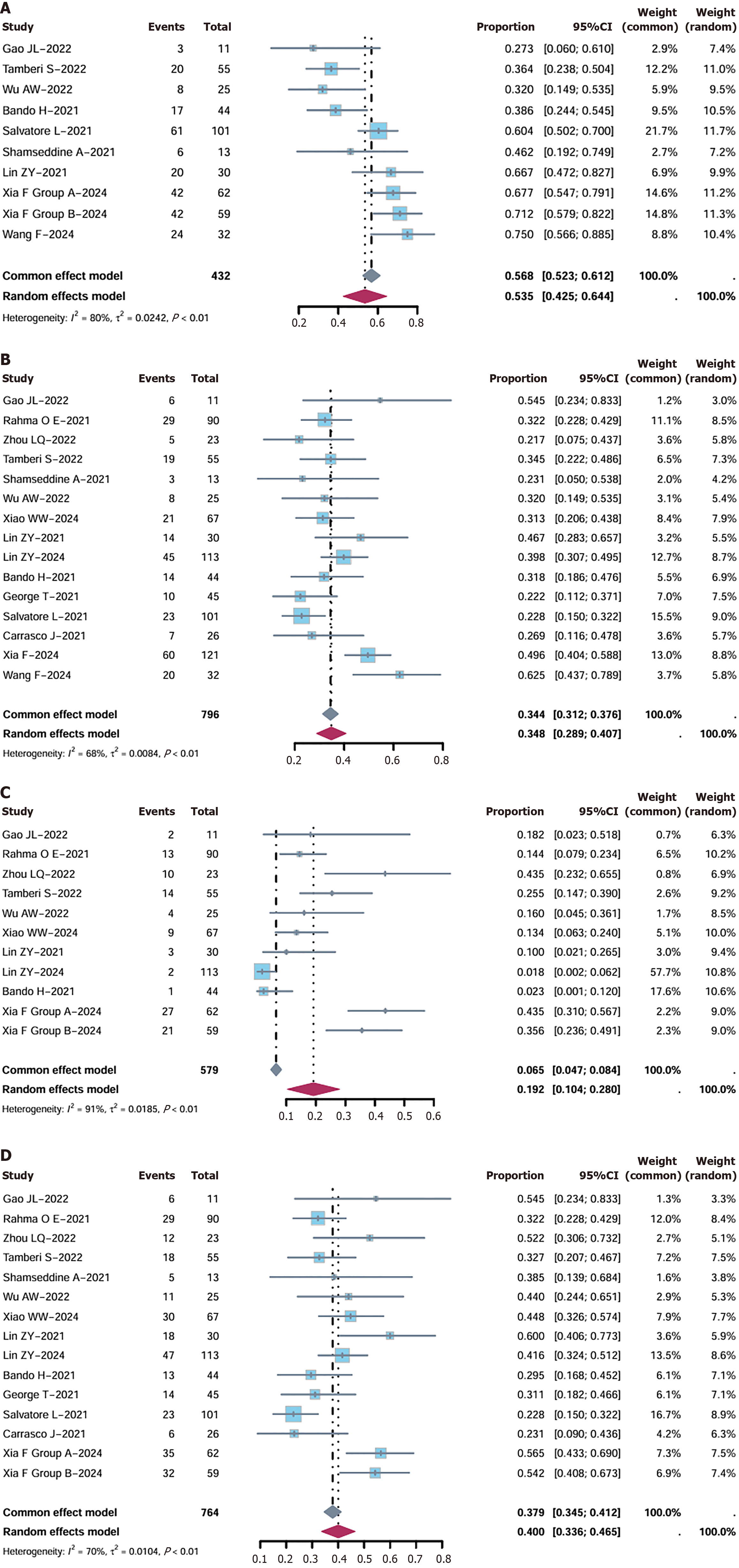 A: Major pathological response; B: Pathological complete response (pCR); C: Clinical complete response (CCR); D: PCR + CCR.