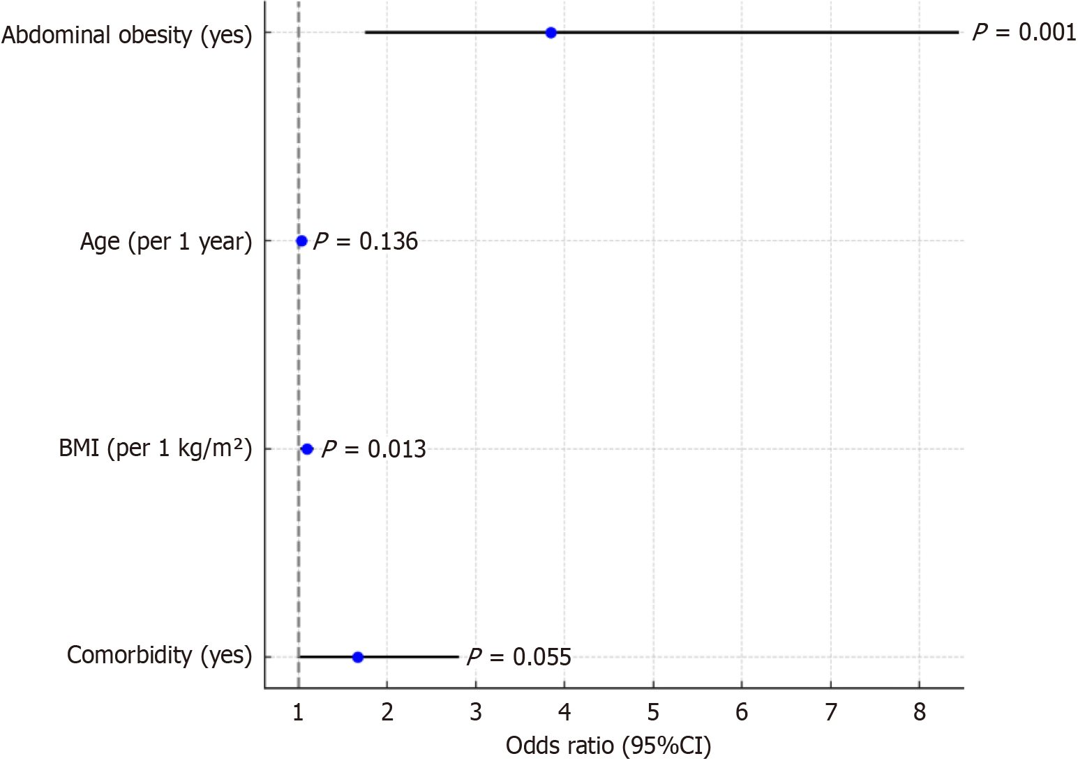 Figure 3 Forest plot results of logistic regression analysis.