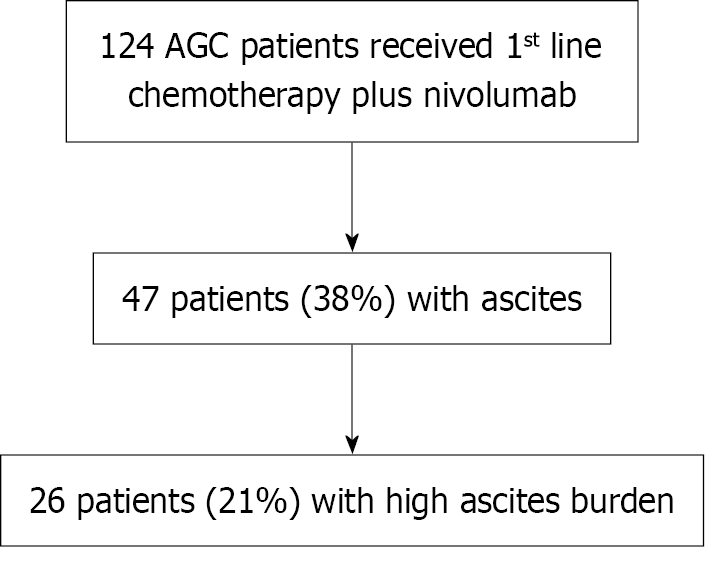 - Citation: Matsumoto T, Sugimoto S, Omori R, Makiyama C, Nakasya A, Nagai H, Yasui H, Higashi R, Sasamoto A, Satake H. Efficacy and safety of nivolumab plus chemotherapy in patients with advanced gastric cancer with massive ascites. World J Gastrointest Oncol 2026; 18(1): 112944