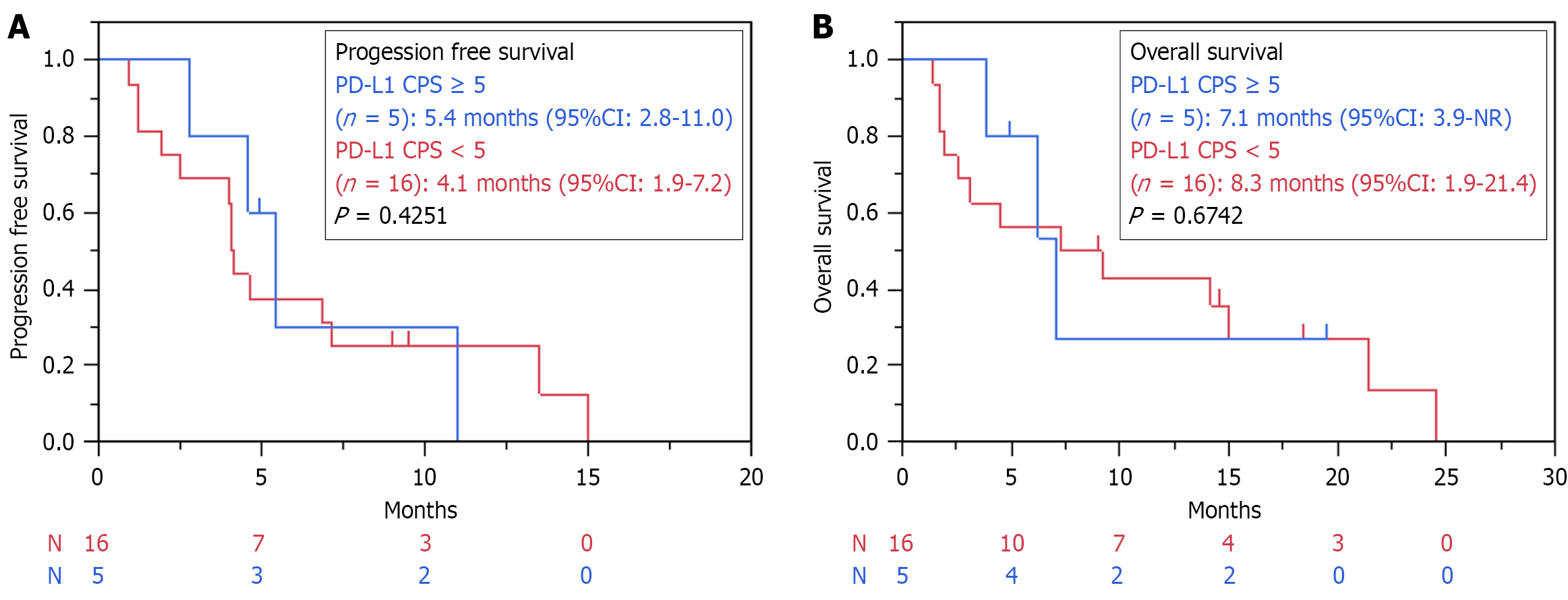 A: Progression-free survival; B: Overall survival. CPS: Combined positive score; PD-L1: Programmed cell death ligand 1.