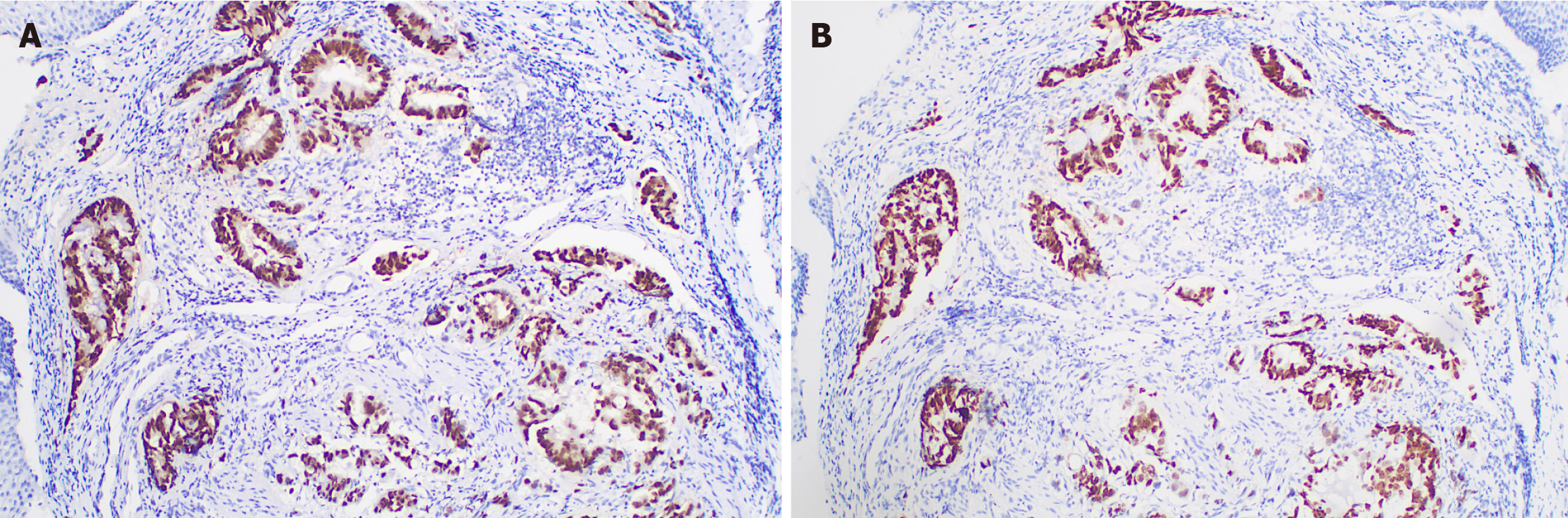 Figure 6 Immunohistochemistry results of primary rectal adenocarcinoma.