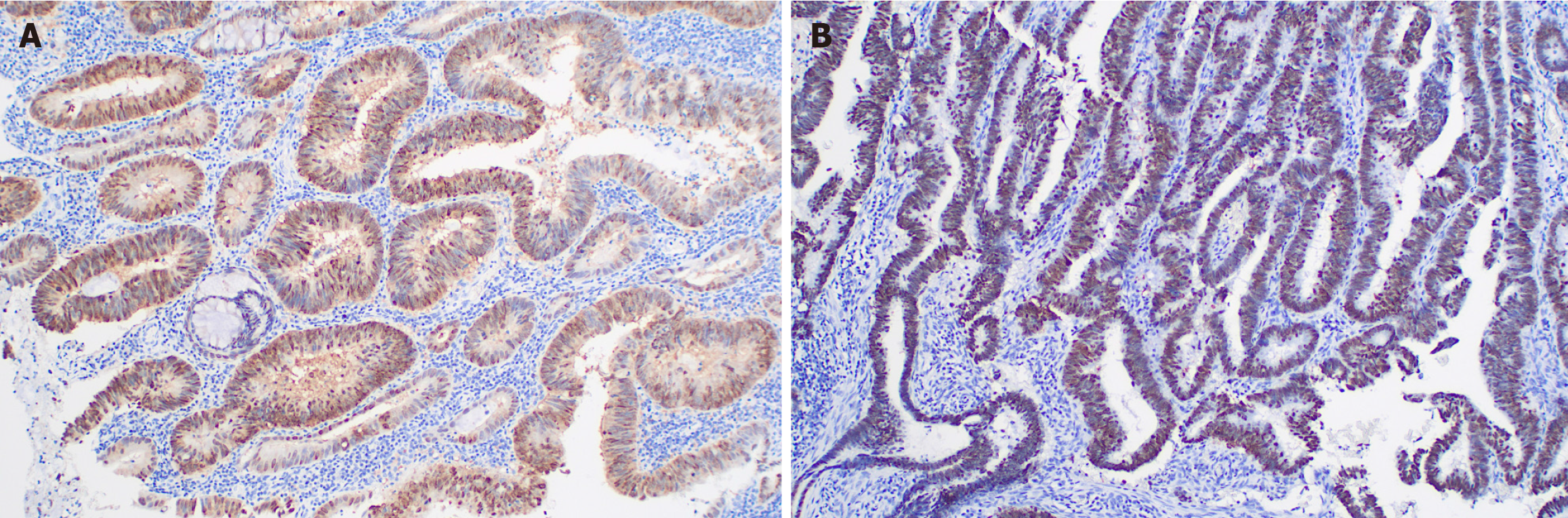 A: CDX-2; B: SATB2.