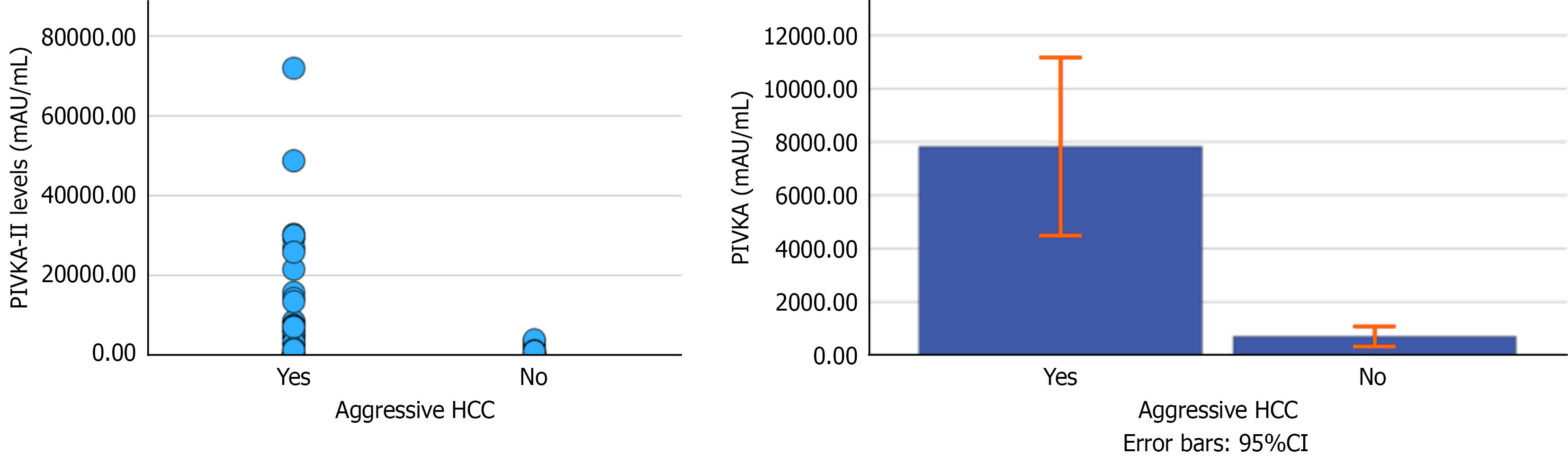 Figure 1 Comparison of protein induced by vitamin K absence levels in patients with aggressive and non-aggressive hepatocellular carcinoma.