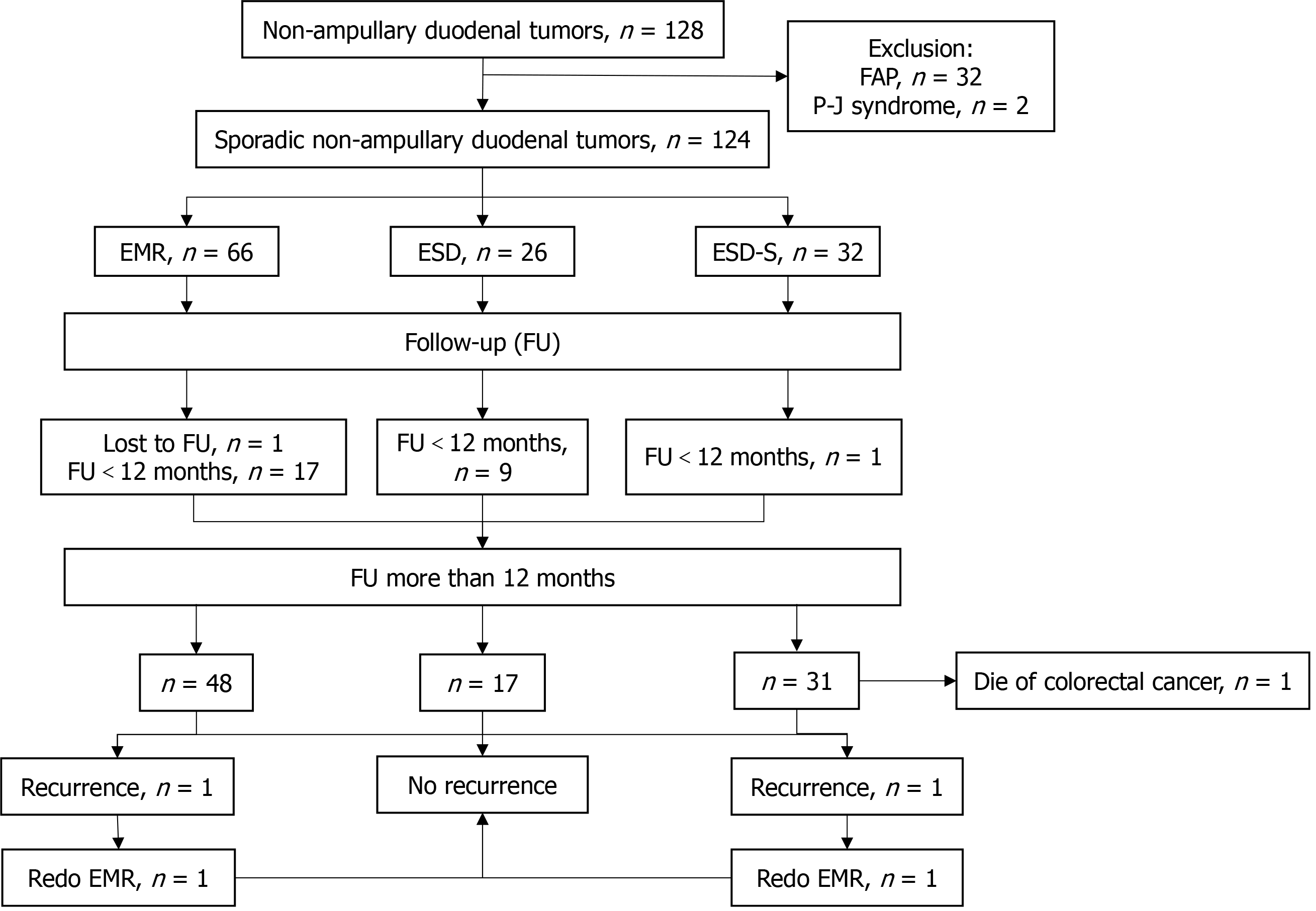 EMR: Endoscopic mucosal resection; ESD: Endoscopic submucosal dissection; ESD-S: Endoscopic submucosal dissection with snare; FAP: Familial adenomatous polyposis.