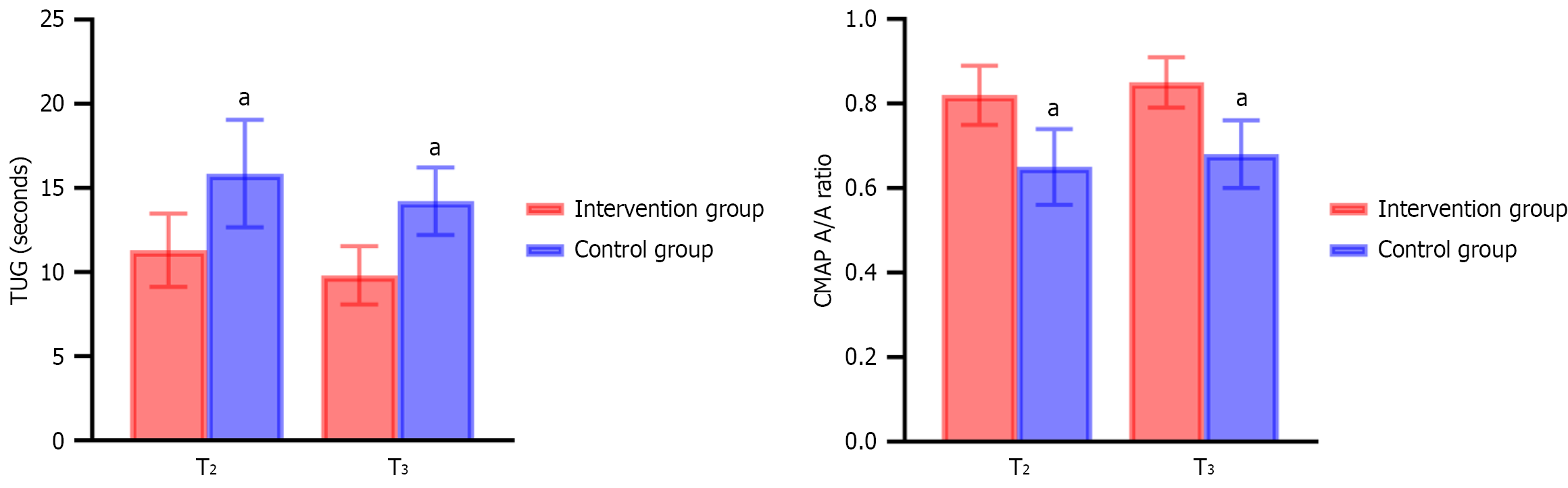 aP < 0.05. TUG: Timed up and go; CMAP A/A: Compound muscle action potential amplitude/area.