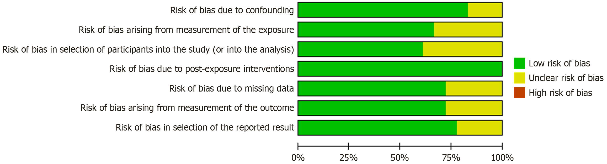 Risk of bias graph: The review authors' judgments about each risk of bias item are presented as percentages across all included studies.