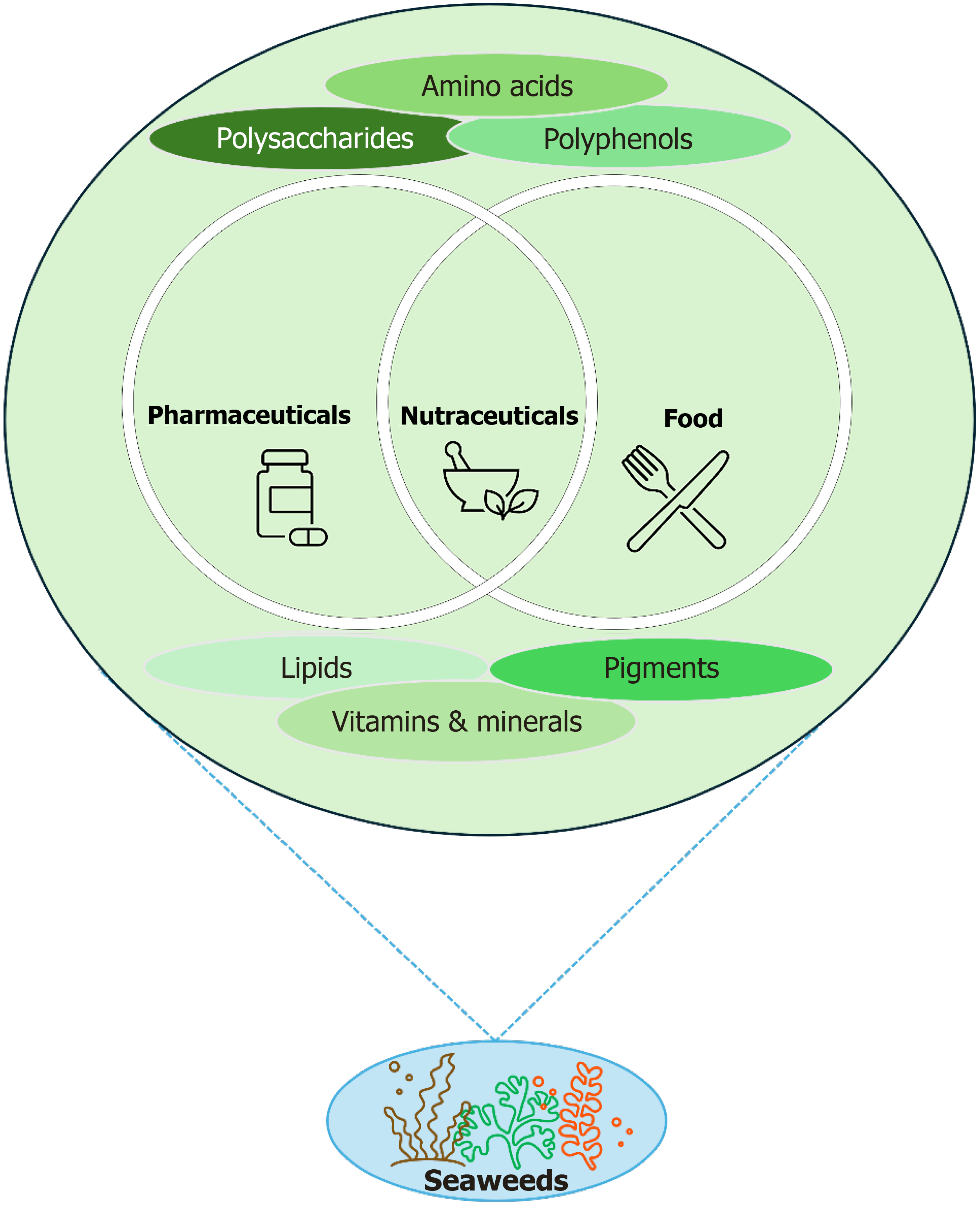 Seaweeds as a rich source of bioactive phytochemicals and their potential applications in functional foods, nutraceuticals, and pharmaceuticals.