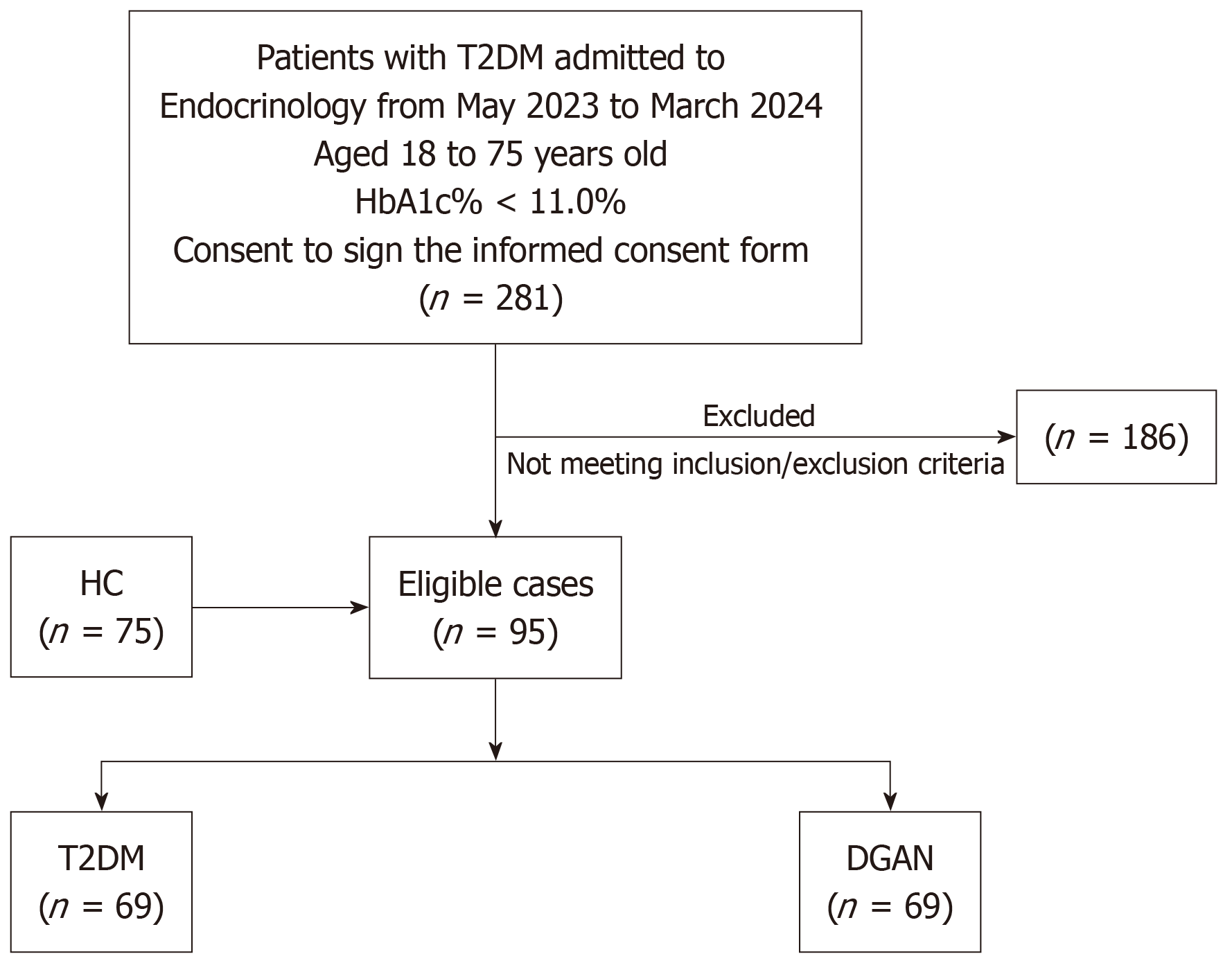 T2DM: Type 2 diabetes mellitus; HC: Healthy control; DGAN: Diabetic gastric autonomic neuropathy; HbA1c: Hemoglobin A1c.