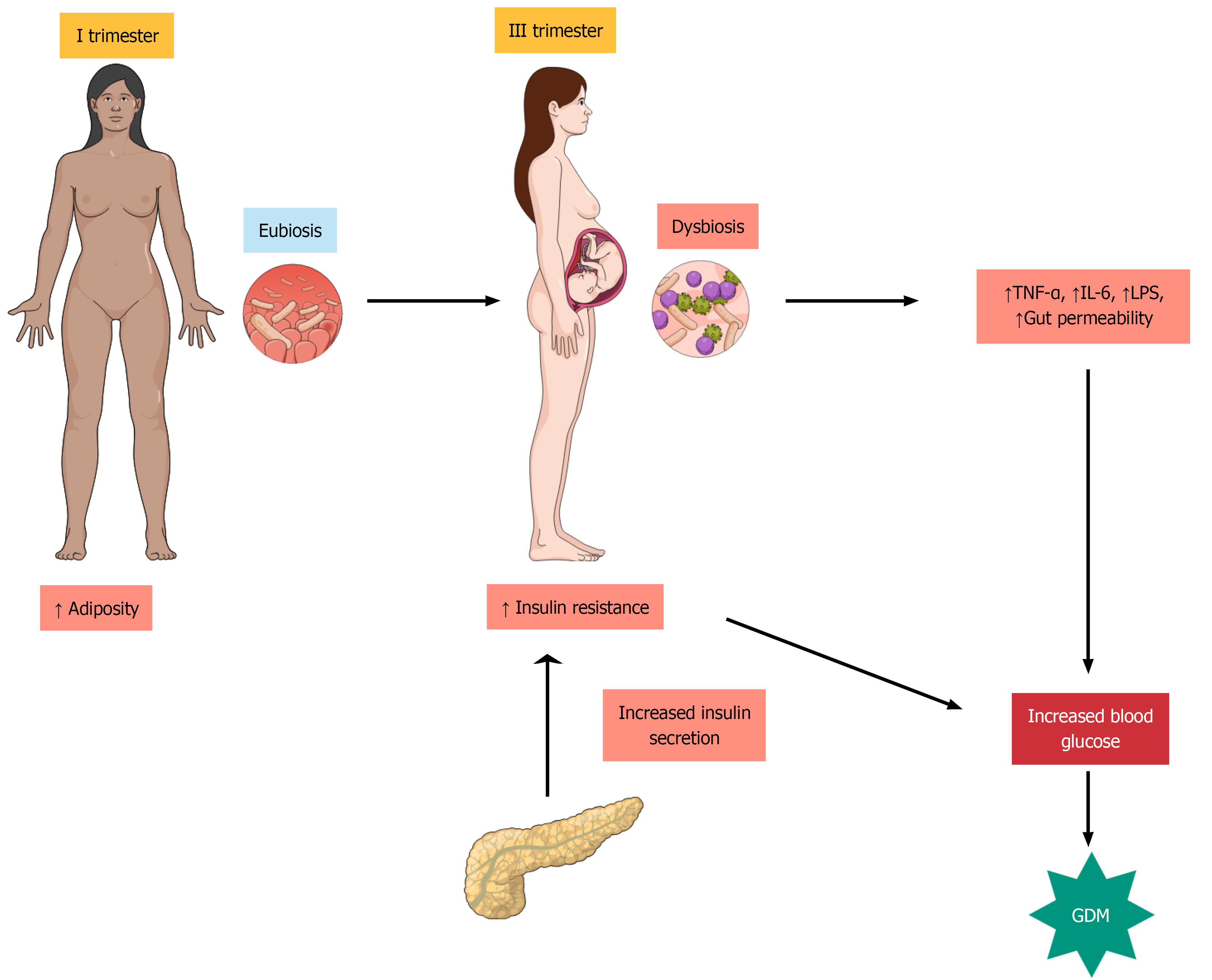 Figure 3 Gut microbiota dysbiosis, microbial DNA, and gestational diabetes mellitus.